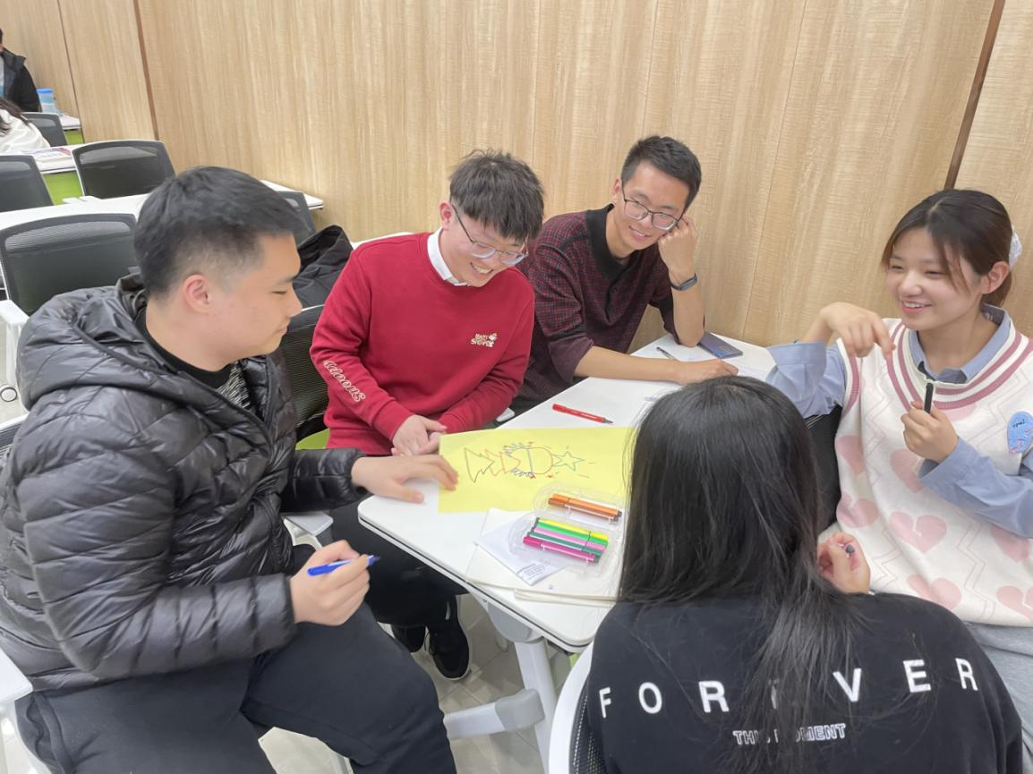 研究生班长高宁负责收集协助组织,共有32名研究生参与此次活动。本次活动分为两个阶段。第一阶段是热身阶段,首先让大家鼓掌欢迎自己进入人生新的阶段,之后,让参与的同学们进行简短的自我介绍,增加彼此之间的熟悉感,放下戒备,让同学们进入放松的状态。第二阶段为游戏比拼阶段,将同学们分组,每个小组抽取单词卡片,经过组内商讨分工后,用身体摆出抽到的单词,增强小组内成员间的沟通合作。之后,带领大家进行“解密千千结”、“绘制团体树”的环节,并进行游戏体验和团体树概念创作理念的分享。最后,让同学分享参与此次活动的感受与收获。