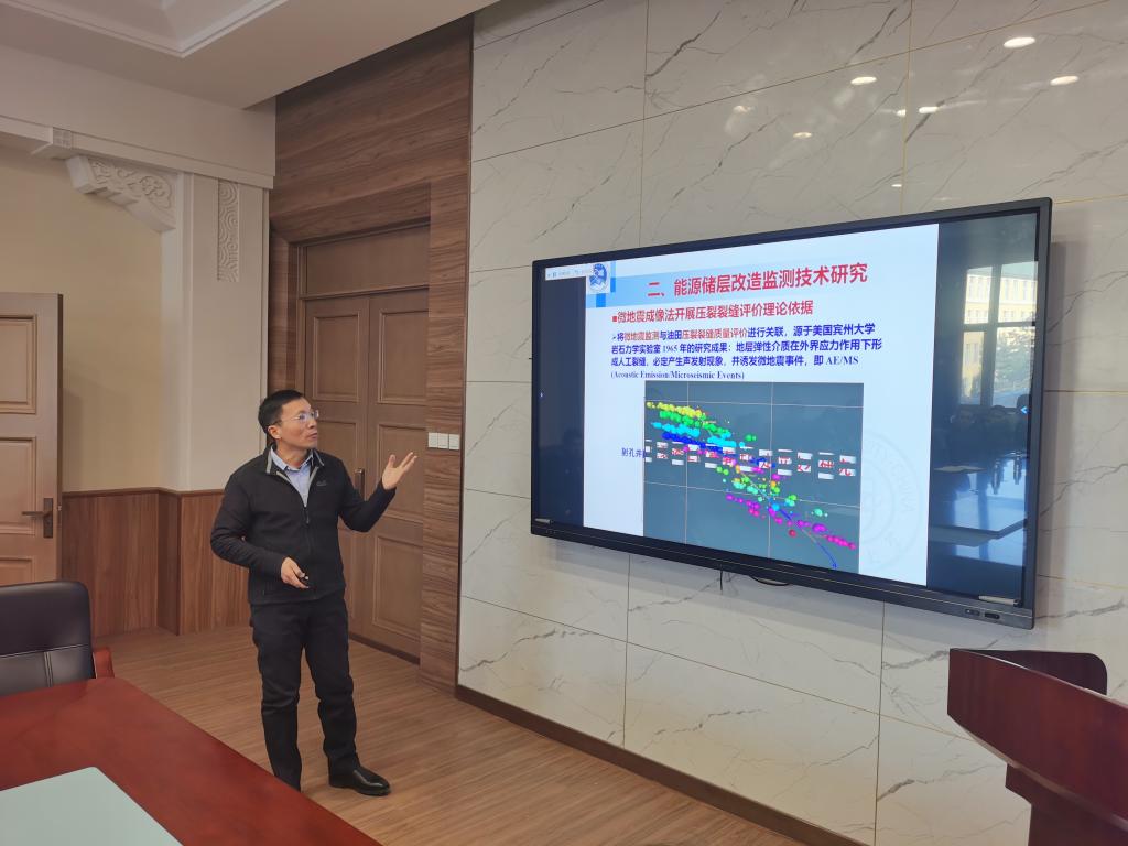 -深蓝感知公共安全技术联合研发中心运行模式、应急管理部国家矿山安全监察局重点实验室申报情况,将有助于科研成果实打实地应用到工程一线;仲志诚教授汇报了光纤传感课题组2021年度工作进展,分别从分布式光纤振动传感系统(DAS)、三维地应力传感系统、结构健康监测系统、DTS分布式光纤测温系统探讨了光纤传感技术的发展与应用;赵静教授围绕矢量磁测技术的优势,研制了高温超导磁测系统、航空三分量磁测系统、深海三分量磁测系统,攻克了一系列关键技术问题,其中“航磁超导全张量梯度测量系统研发”获得了2020年地质科技十大进展。