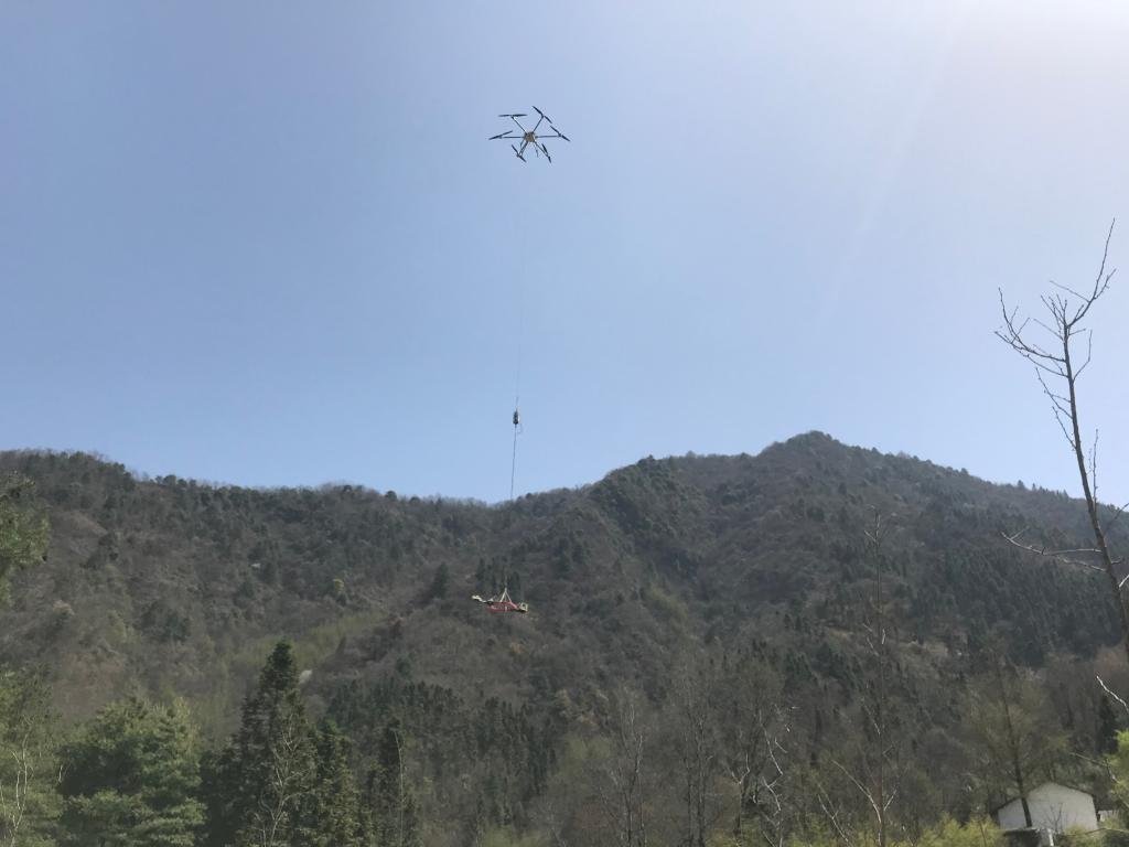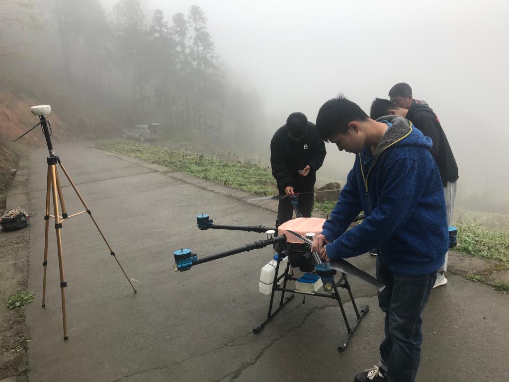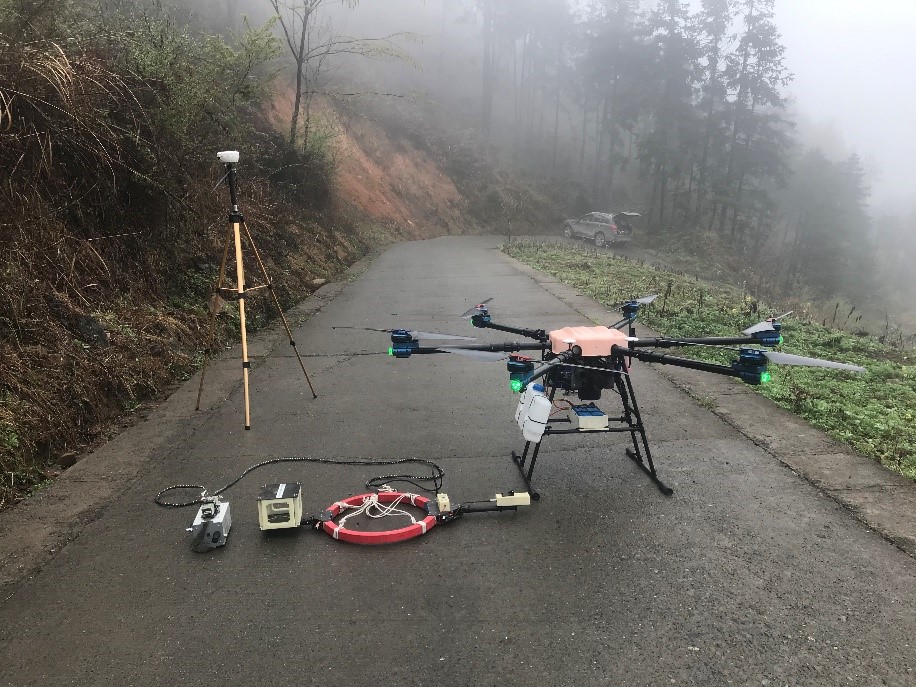 林君院士地空电磁探测团队于生宝教授、刘长胜教授、周海根副教授、滕飞高级工程师及其研究生赴重庆市城口县,应用大载重长航时油电混合动力旋翼无人机飞行平台,搭载最新研发的三分量传感器,实现了复杂山区高效探测。此次的探测线路多涉及海拔1500m以上的高山峡谷区,地表最大高度差1200多米,植被茂密,是典型的地面方法难进区,地面大部分物探资料空缺。为了保质保量完成工作任务,团队成员每天行进在崎岖险峻的山路、躲过高空落石、攀过十里大山,风餐露宿克服重重困难,利用自主研发的地空时频电磁探地装备,实现了“难进入区”深部和盲区的地电结构勘查,探明了重庆市城口县至陕西省安康市多段隧道线路的地下结构,取得了宝贵的电磁物探资料。