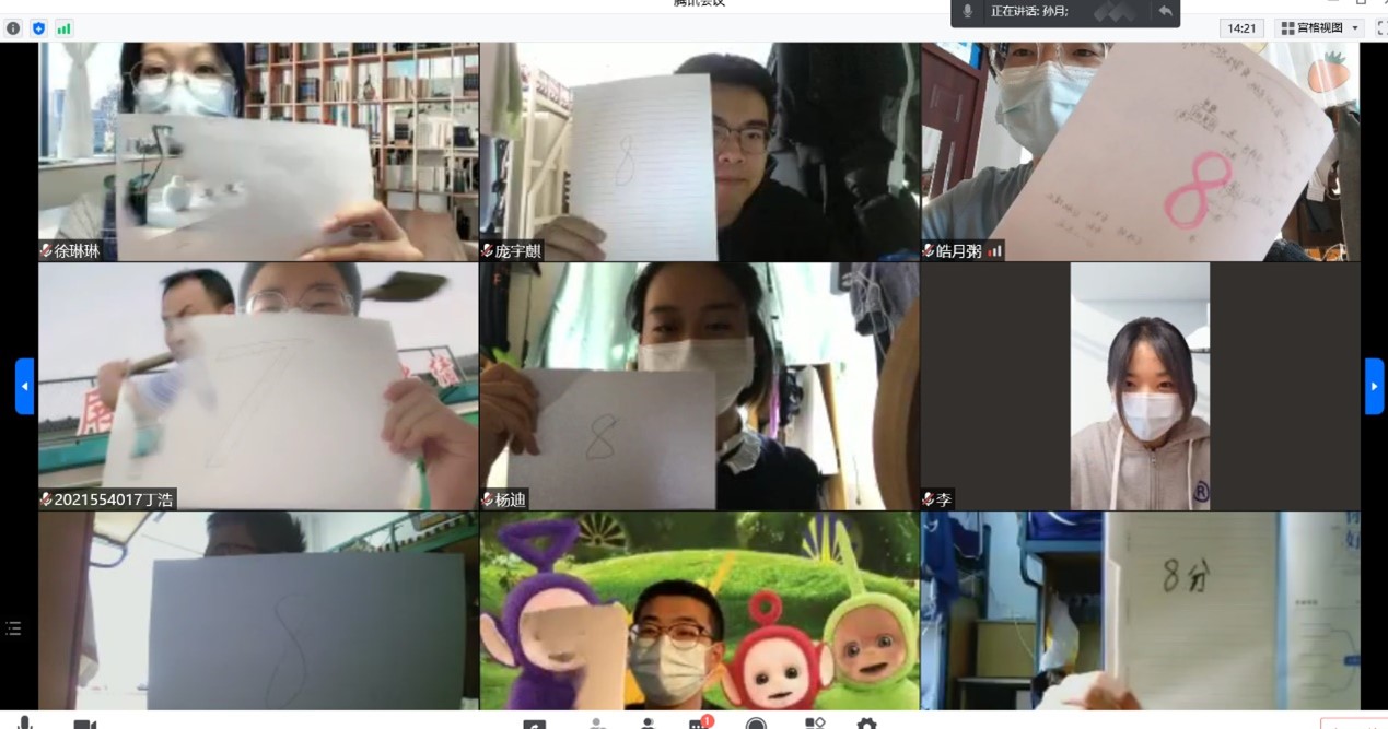 本次活动通过腾讯会议平台分两个场次以在线形式开展。在活动中,以“摇摆时钟”、“情绪安慰剂”、“不烦躁的理由”、“我的一天”等环节,引导学生利用团体动力和人际支持,帮助学生关注自己和他人的情绪,探索心理支持资源,排解在线学习中的困扰,促进班级成员互助。每位参与活动的同学都积极投入到活动中,对近期学习状态和遇到的困惑进行了分享,活动时大多数同学都展现出了积极乐观的学习生活态度。