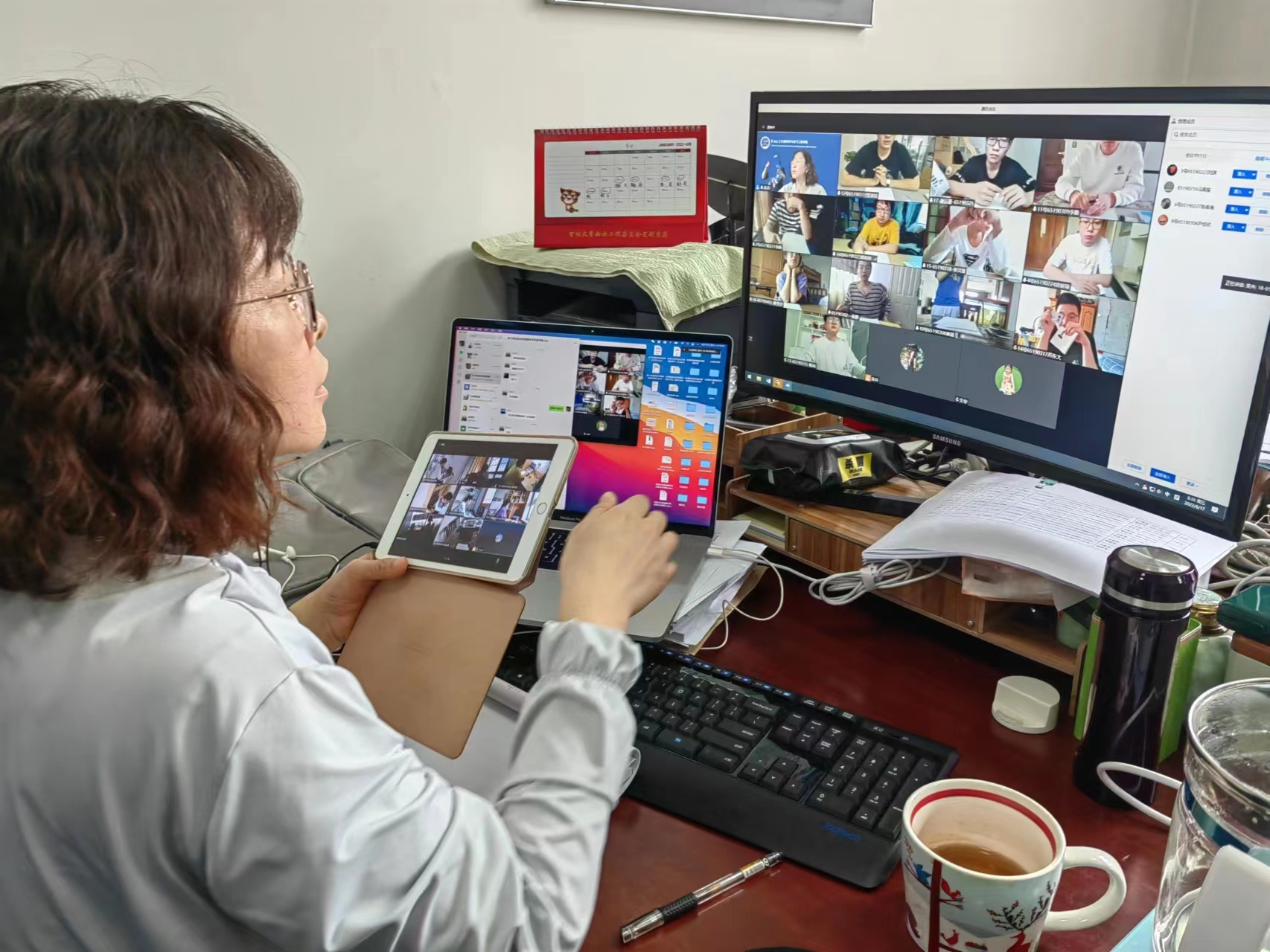 在朝阳校区地质宫为监考教师专门准备了两个会议室和笔记本电脑,便于家庭网络和设备条件不好的教师开展监考工作。考试过程中要求领导班子全员巡考,考试专项工作组全体成员实时在线,及时协助监考教师处理突发事件。