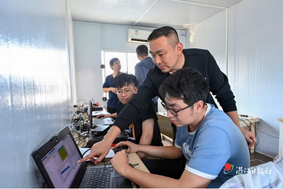 林君教授牵头组建海洋可控震源攻关团队,针对目前石油勘探企业所面临的低频能量不足和频带范围窄等问题开展技术攻关。2021年10月,林君院士与湛江湾实验室签署合作协议,成立湛江首个院士工作站,向海洋油气勘探可控震源这一颠覆性技术发起“冲锋”。从第一台300公斤便携式小型震源,迭代改进为一台大型勘探设备,再升级为两台组合阵列式可控震源……年轻而充满斗志的科研团队,不畏高温酷暑,不惧风高浪急,跑遍了湛江大大小小的海域,四年磨一剑,他们的坚持和付出终于得到了回报。