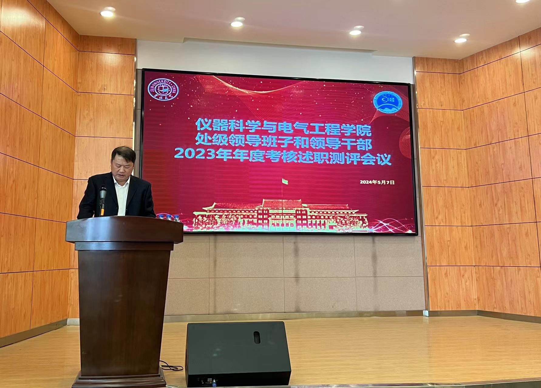 2023年在党的建设、人才培养、学科发展、科学研究、交流合作等方面工作的完成情况。随后,院领导邱增凯、嵇艳鞠、周伟、刘长胜、林婷婷、随阳轶、南旭良、田国胜、边江依次按照分管领域,向与会人员作工作述职。述职后,与会教工对处级领导班子和领导干部进行了测评投票。