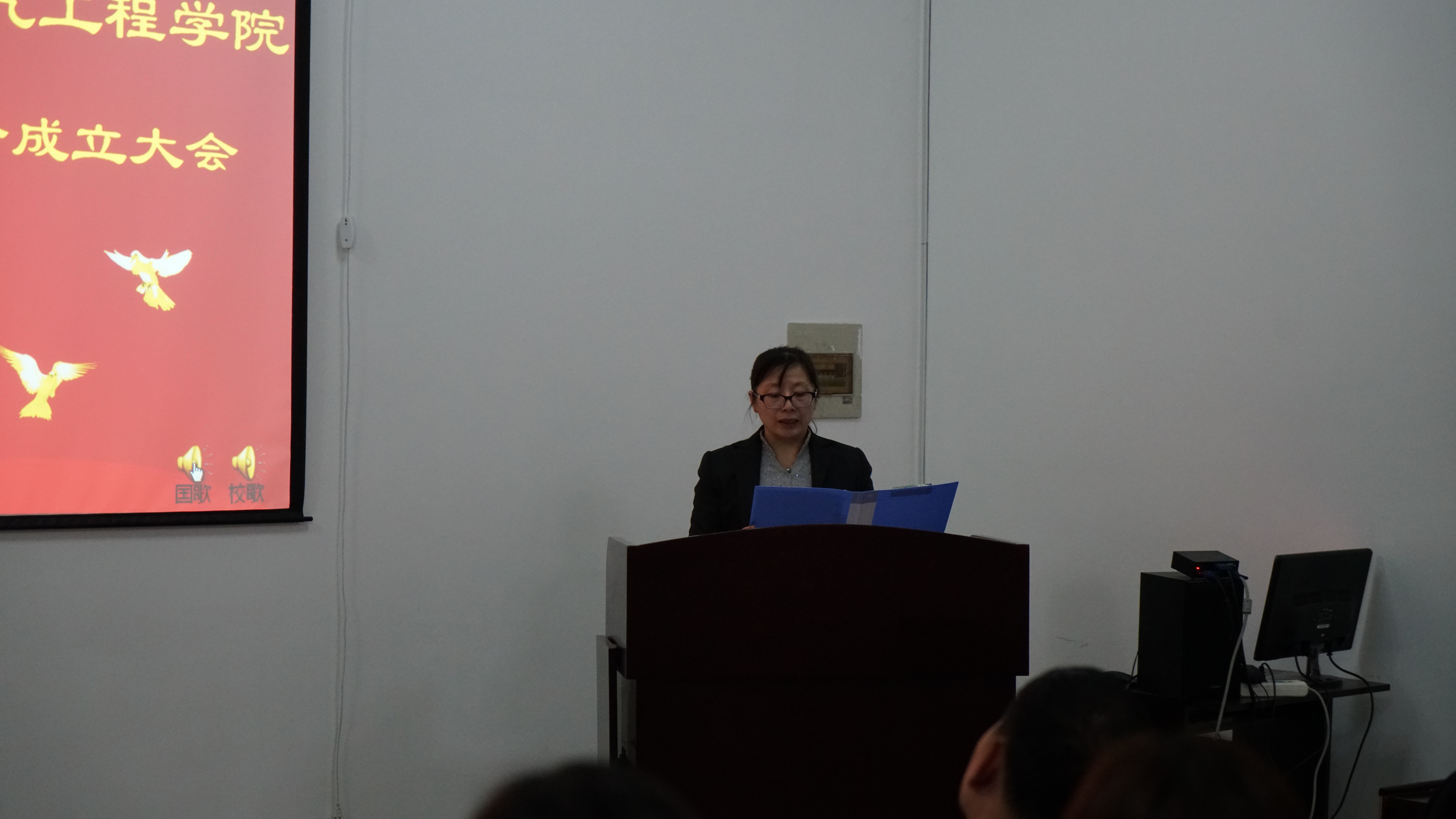 党委书记王爱民、副院长嵇艳鞠、党委副书记邱增凯和院团委书记张昊宇出席成立大会。下午1:30分,伴随着雄壮激昂的国歌声,会议在院党委副书记邱增凯老师的主持下拉开序幕。