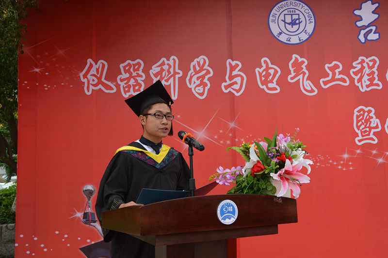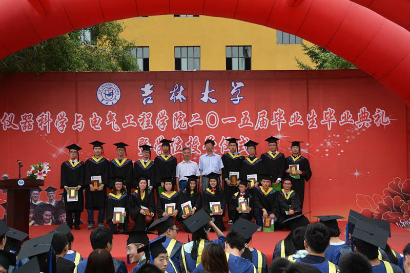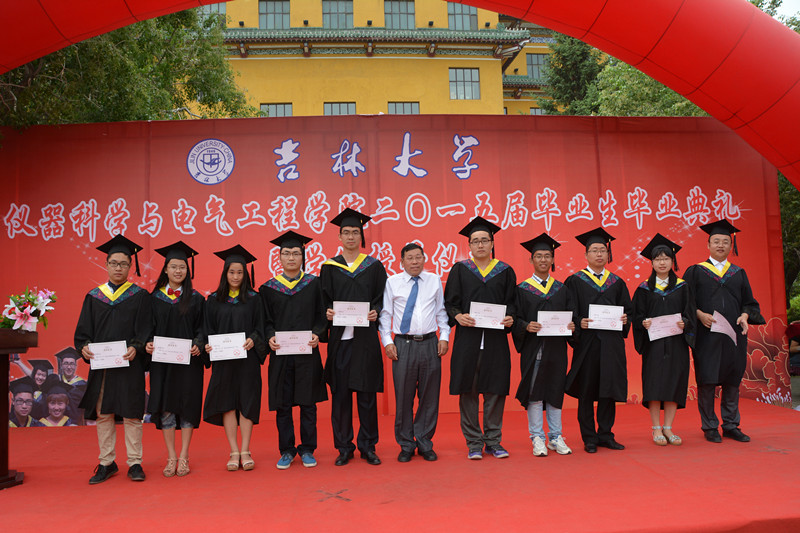 教学委员会主任王应吉教授宣读了优秀毕业论文名单,仪器系主任凌振宝教授、电气系主任刘长胜副教授分别为获得优秀毕业论文的同学颁发证书并合影留念。之后,教师代表王应吉教授和2015届毕业生代表、黑料不打烊