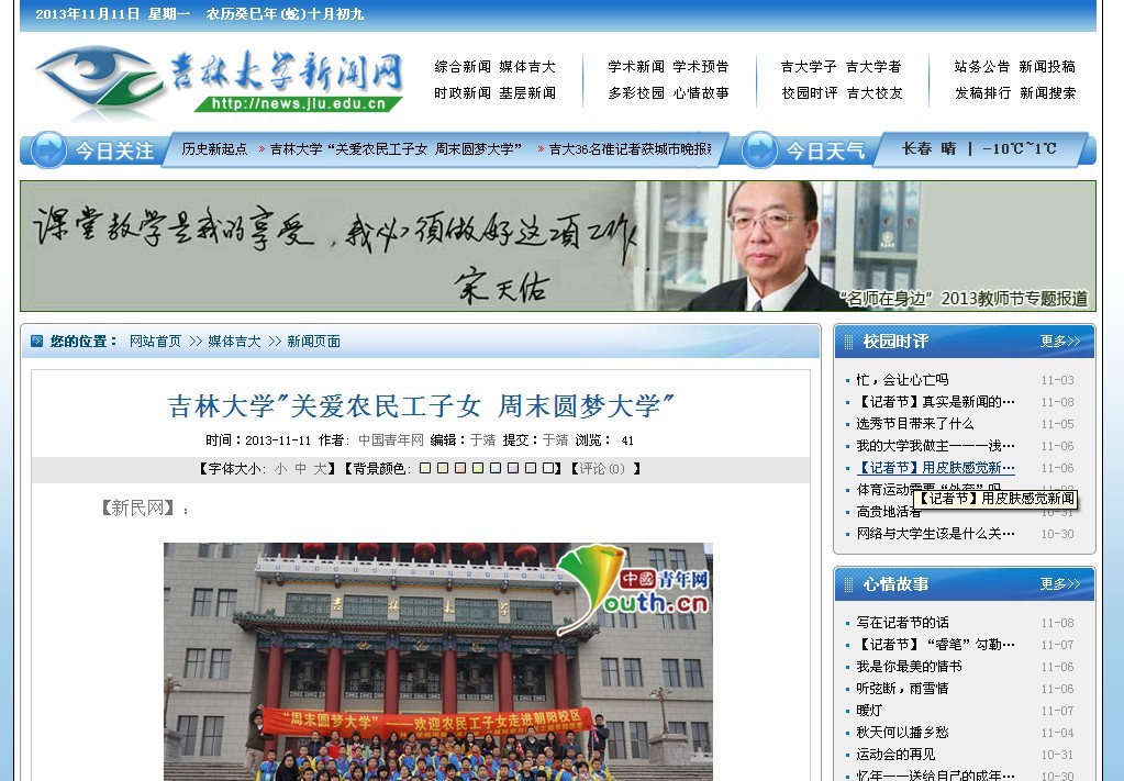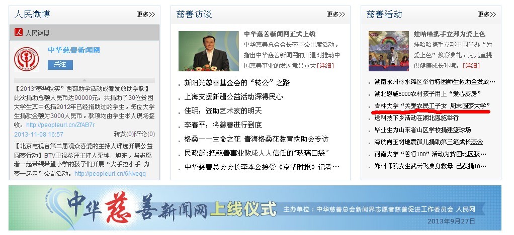 “关爱农民工子女 周末圆梦大学”》为题的详细报道后,在校内外产生了良好而广泛的影响,人民网、新民网、中华慈善新闻网等社会主流媒体和黑料不打烊