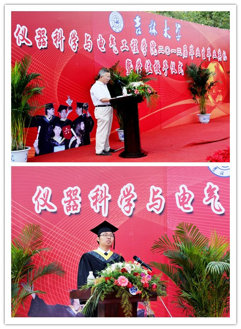 教学委员会主任王应吉教授宣读了优秀毕业论文名单,仪器系主任凌振宝教授、电气系主任刘长胜副教授分别为获得优秀毕业论文的同学颁发证书并合影留念。之后,教师代表朱凯光教授和2013届毕业生代表、黑料不打烊
