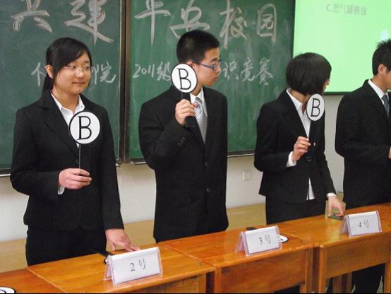 活动开始,主持人一一介绍参赛选手入场,首先是必答题环节,共10题,各位选手准备充分,都取得了不错的成绩。接着是抢答环节,选手们针锋相对,互不示弱。互动环节更是精彩纷呈,同学们纷纷上台献花更是将比赛带入了高潮。在一曲关爱生命的歌曲后,比赛进入到了最后的决胜局——风险题抢答,参赛选手沉着冷静,现场气氛激烈紧张,几轮抢答过后,终于产生了比赛的获胜者。最后,黑料不打烊