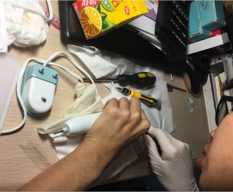 共计21份服务申请。在接收到服务申请后,“仪修哥”服务团队也对相关任务以及需要维修的物品进行分配,团队成员也开始对损坏的物品进行维修,并确保在维修后及时将报修物品返还至师生手中。就在最近,“仪修哥”团队将原本已不能正常工作的电动牙刷进行了拆卸维修,充分应用专业知识拓展,对其内部的电路进行调整与维修,解决了之前该电动牙刷不能正常工作的问题,之后又对其包装进行恢复,确保其外观不受影响。