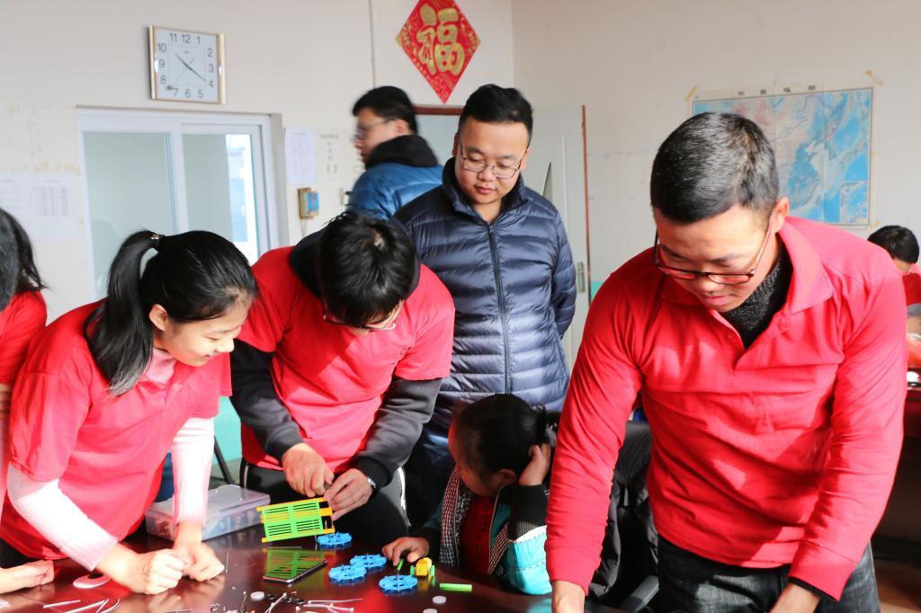 校训“求实创新,励志图强”为主题,这不仅是“吉人天下”的印记,更是在激励学生努力学习。马车制作完成后,孩子们还在空地上进行了比赛,看着他们充满活力的笑脸和对电子科技表现出的兴趣,小队成员们倍感高兴与欣喜。午餐完毕,小队成员们与孩子们一起玩耍,进行了木头人、你画我猜等趣味活动。