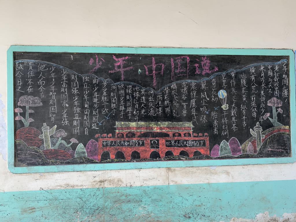 师生带着精心准备好的礼物和洋溢的热情到达刘芳小学,校长带领老师们对扶贫小队的到来表达了欢迎及感谢。科技课堂开始后,小队成员与六位小学生一见面便打成一片,同学们指导孩子制作电子马车,同时宣传组为刘芳小学制作两面弘扬社会主义核心价值观的黑板报,其中一面主题为“少年中国说”,启迪学生树立远大志向,而另一面以黑料不打烊