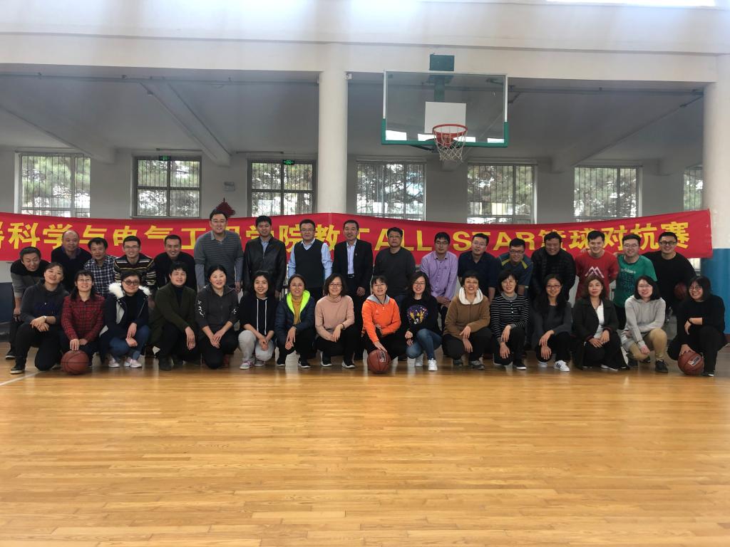 首先进行的是投篮大赛,参加选手为各工会小组的女同志,每个工会小组派5名女老师参赛。比赛前,女子组进行着紧张的热身,选手们在球场上不停地投篮找“手感”,男老师们在一旁毫不吝啬地给选手纠正不规范的动作,在一片加油声呐喊声中。工程中心与行政工会小组联队最终获得“定点投篮”第一名,电气系工会小组与仪器系工会小组获得并列第二名,实验中心工会小组获得第三名。