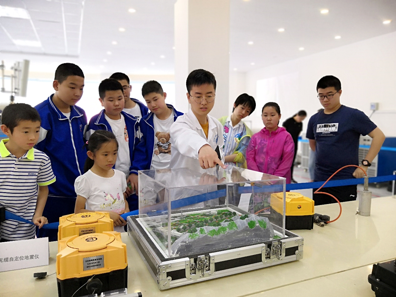 附中、附小参观学生80余人。学生们通过观看视频宣传片,了解了我国物探仪器发展的光辉历程。参观工程中心的主要研发室,使同学们了解了地球物理勘探的基本方法。