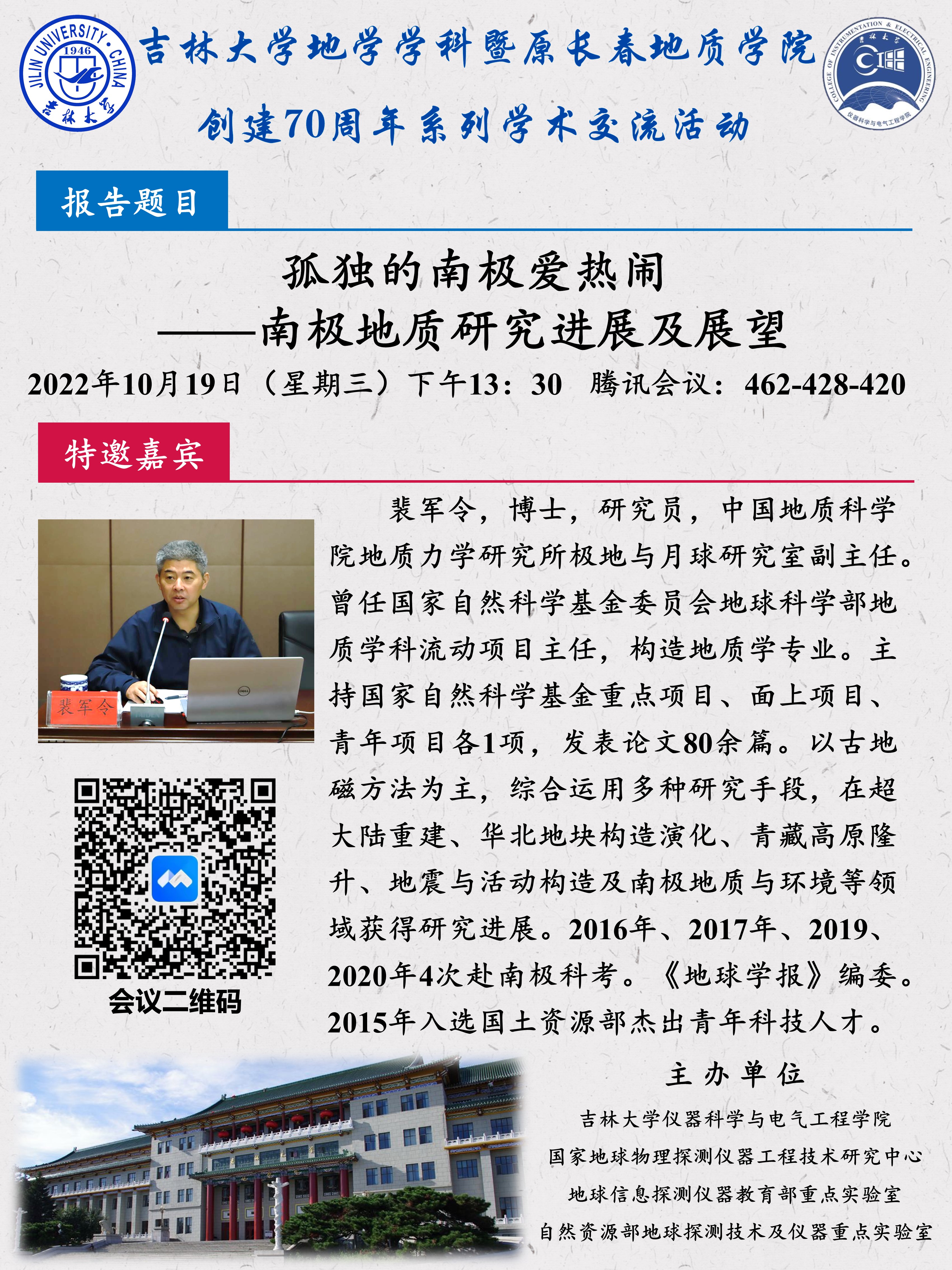 黑料不打烊 地学学科暨原长春地质黑料不打烊 创建70周年系列学术交流活动
