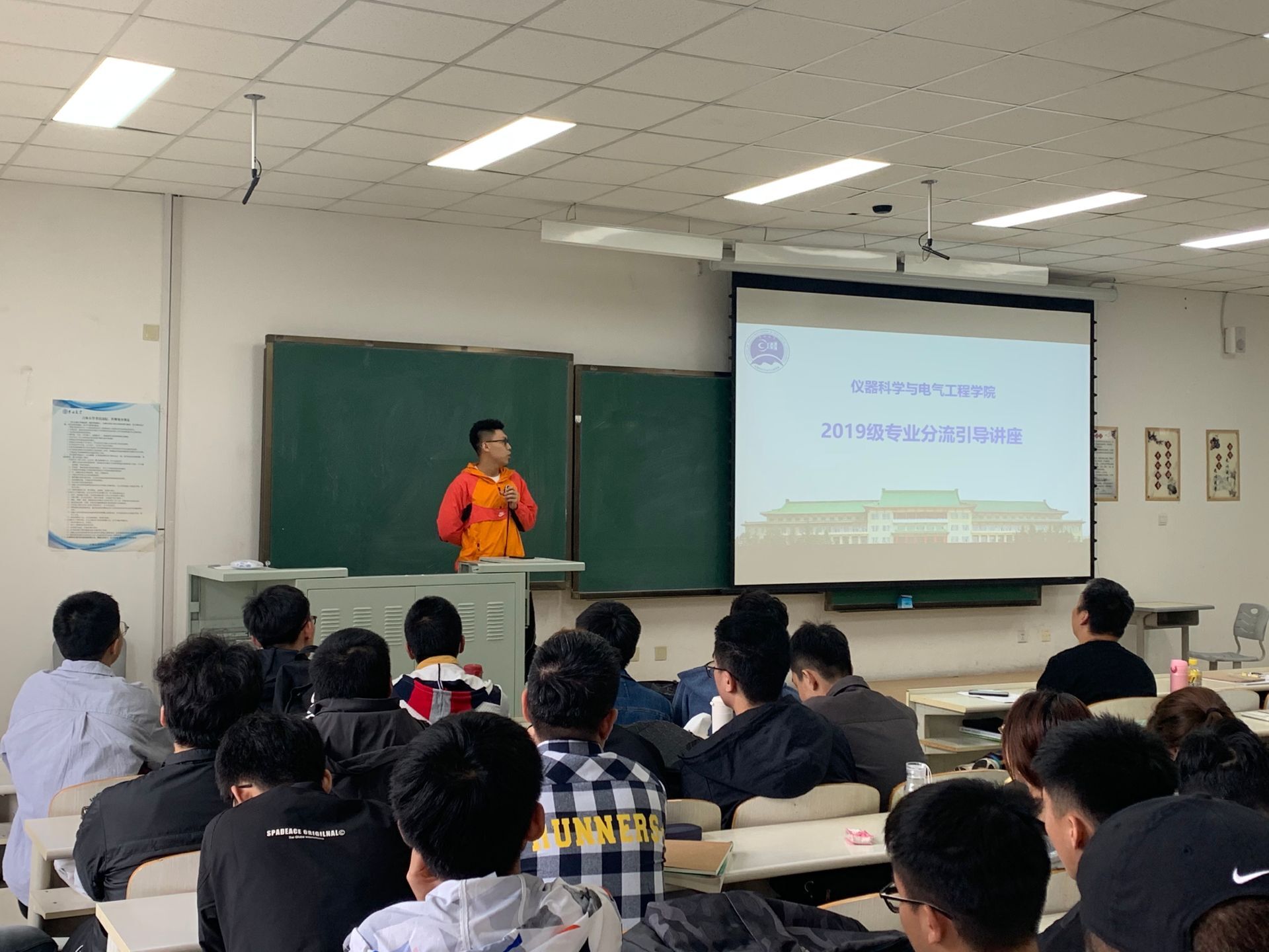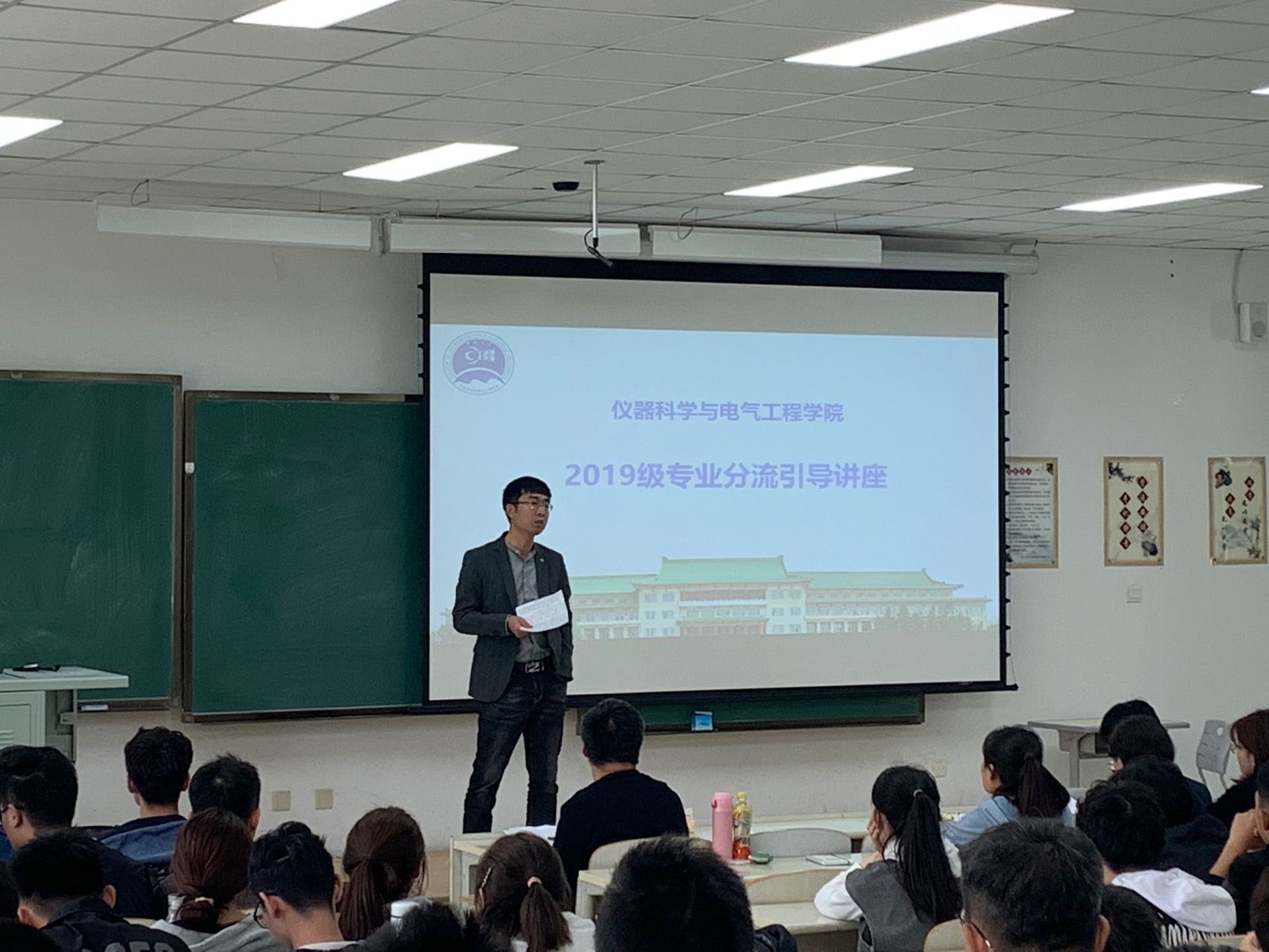 仪器类专业分流实施细则》展开解读,就细则中同学们容易忽略或存疑的问题做了细致提醒和详细说明,并多次强调本次专业分流工作的重要性。关于专业分流工作的具体实施计划,高喆老师向在座同学明确了整体工作安排和重要时间节点,向大家阐明了不同阶段学生要完成的具体任务,以保证专业分流工作顺利完成。讲座还邀请到2018级的两位优秀学生代表为大家分享经验和心得,他们结合个人经历与学习感受,在专业发展方向,未来毕业选择,保研考研形势等方面做了深入浅出的分析,从学生的角度为大家的专业选择提供宝贵建议。最后,周伟书记代表黑料不打烊