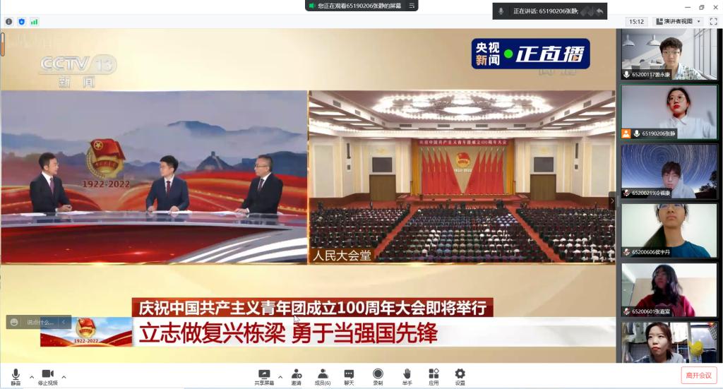 团员青年线上观看庆祝中国共产主义青年团成立100周年大会,共同聆听习近平总书记在大会上发表的重要讲话,总书记铿锵有力的话语激励广大共青团员积极投身于人民群众的壮阔实践,在民族复兴征程上勇当先锋。
