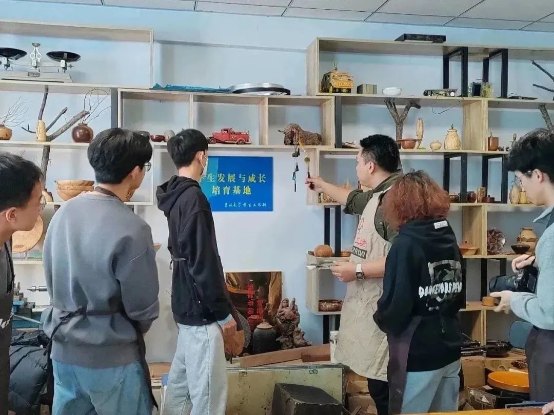 党委副书记兼副院长李阳老师担任木工导师。李阳老师详细介绍了木客空间的发展历史、木艺制品的类别、创作工具以及创作流程。在展示了往届优秀作品后,同学们开始巧妙构思,精心思考,在李阳老师的指导下将其创意制成作品。室外白雪皑皑,屋内硕果累累。经过近四个小时的制作,同学们做成的木梳、发簪、耳环等工艺品赢得了大家的阵阵掌声。