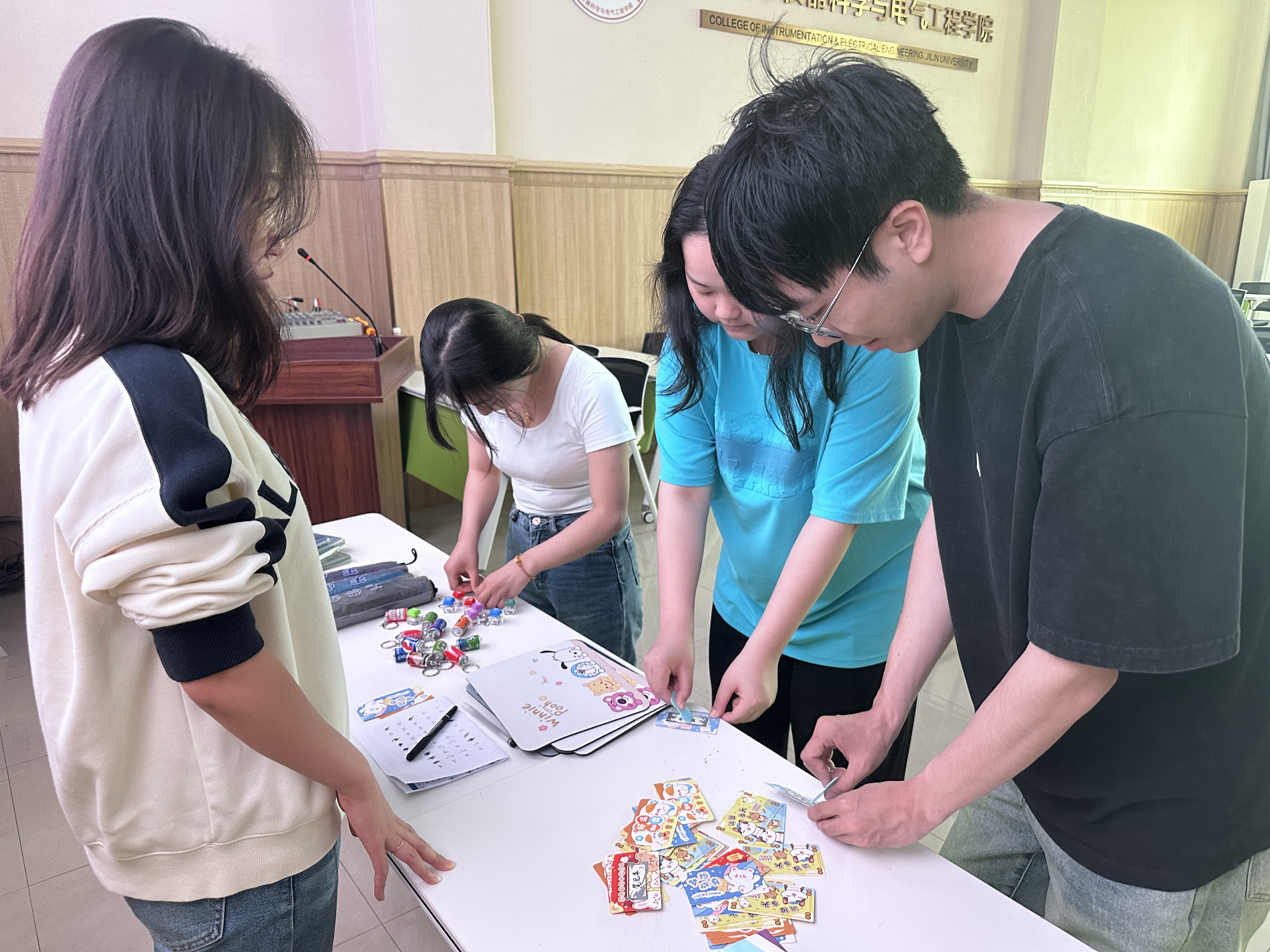 本次活动以轻松愉快、充满创意的方式展开,独具匠心地采用了“情绪卡片”兑换“彩票”的形式,极大地降低了参与门槛,让每位研究生都能轻松融入其中,同时也大大增强了活动的趣味性和吸引力。同学们纷纷在活动准备的情绪卡片上倾吐心声,将自己的焦虑、困扰或烦恼真诚地记录下来,然后将卡片轻轻放入“情绪兑换机”中。随后,他们便有机会从充满惊喜的“彩票”盲盒中随机抽取一张刮刮乐卡片,并凭此兑换精美解压小礼物。