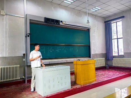 班会中,王晨旭为大家介绍了网络安全的重要性,从网络安全的基本知识、网络安全面临的挑战、网络诈骗的常见手段、个人信息保护的重要性以及如何安全使用网络等方面进行了分享。