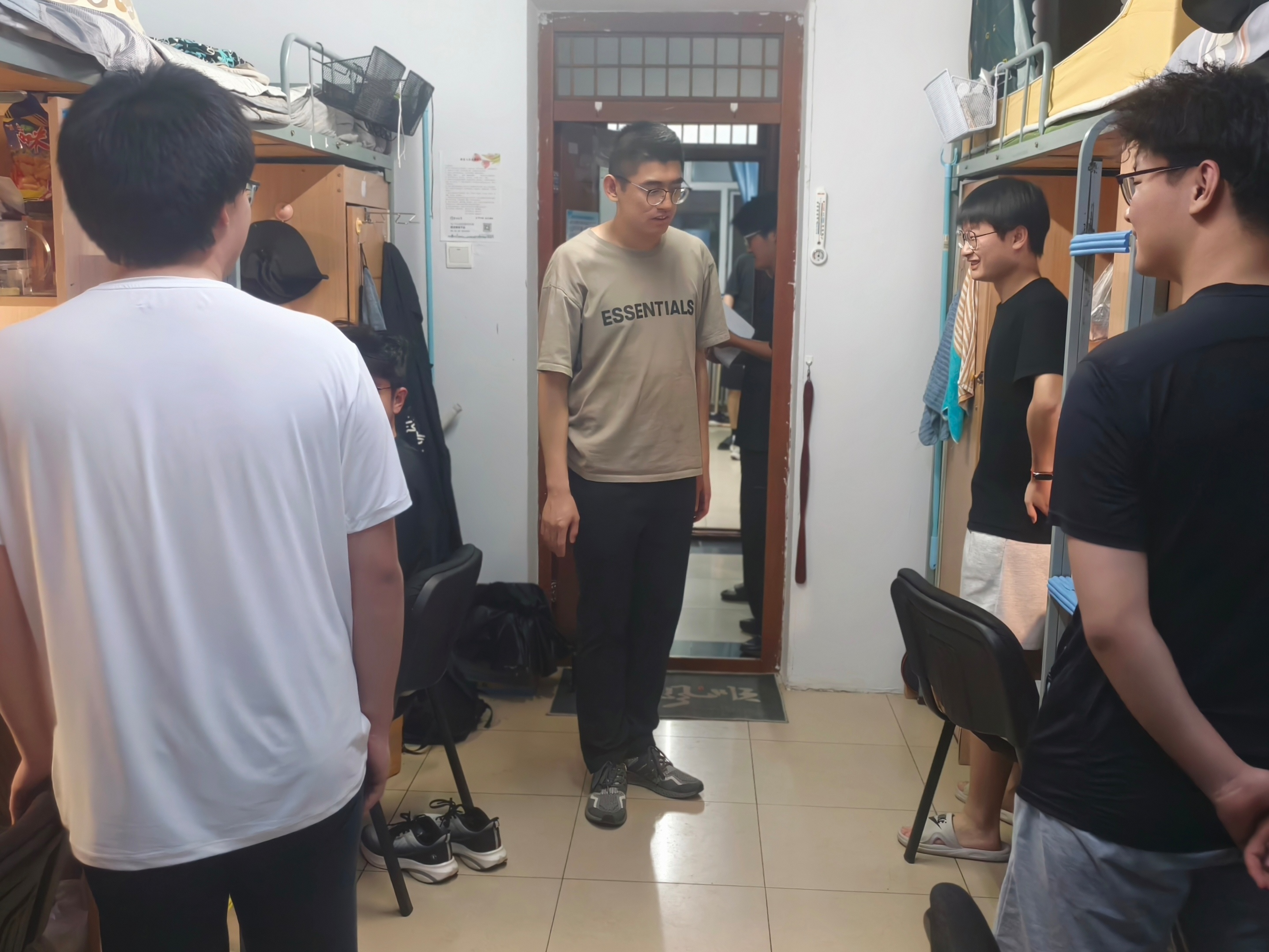 在朝阳校区地质宫各实验室,各位辅导员与研究生导师、本科生毕业设计导师深入交流,强调实验室用电安全,了解研究生及本科毕业生的科研及毕业设计进展情况,现场为学业困难学生制定帮扶方案;在学生寝室,各位辅导员针对寝室卫生状况、电源插座使用规范、电器设备合规性等进行认真细致排查,并建议同学们勤通风、常打扫,共同维护整洁有序的居住环境;提醒大家合理规划学习时间,注重劳逸结合,以良好状态迎接期末考试。