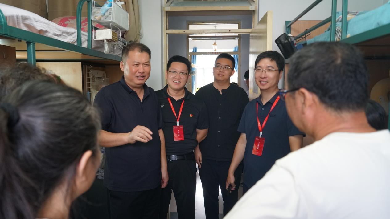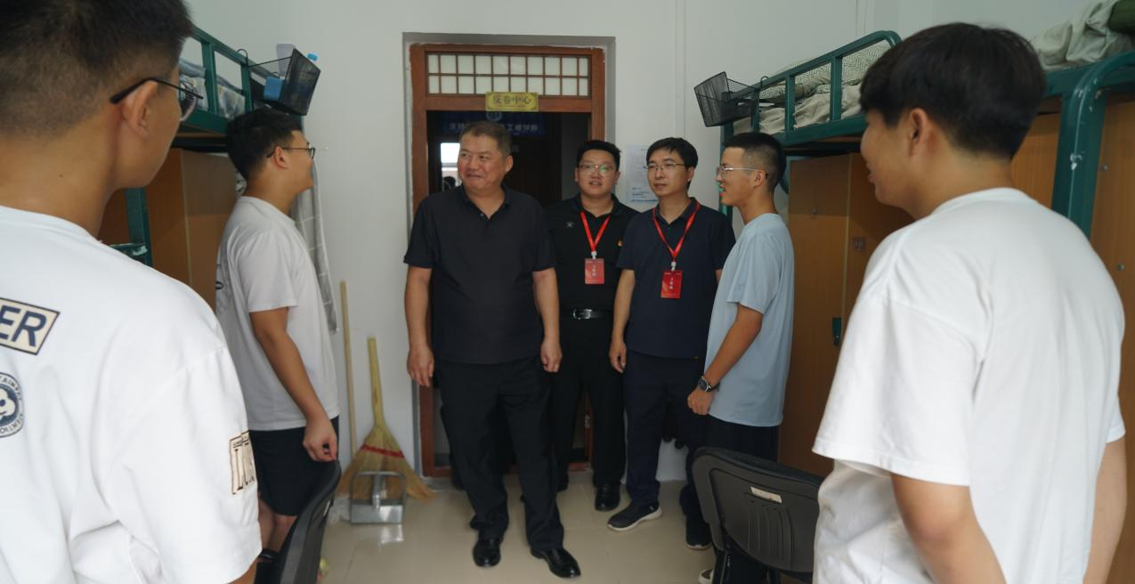 走访过程中,老师们逐间走进寝室,细致查看住宿环境:从门窗密封性到家具完好度,逐项确认新生居住体验;随后主动与新生拉近距离,亲切询问家乡籍贯、行李安置情况及对校园的初印象,让初入校园的新生倍感温暖。针对家长关心的“专业学习规划”“寝室安全管理”以及新生提出的“社团选择”“食堂就餐”等问题,老师们耐心倾听、逐一解答、给出建议。院党委书记邱增凯老师勉励新生要尽早制定大学生涯规划,在集体生活中互帮互助、共建良好学风,养成健康生活习惯,努力成长为有理想、有本领、有担当的新时代栋梁之才。