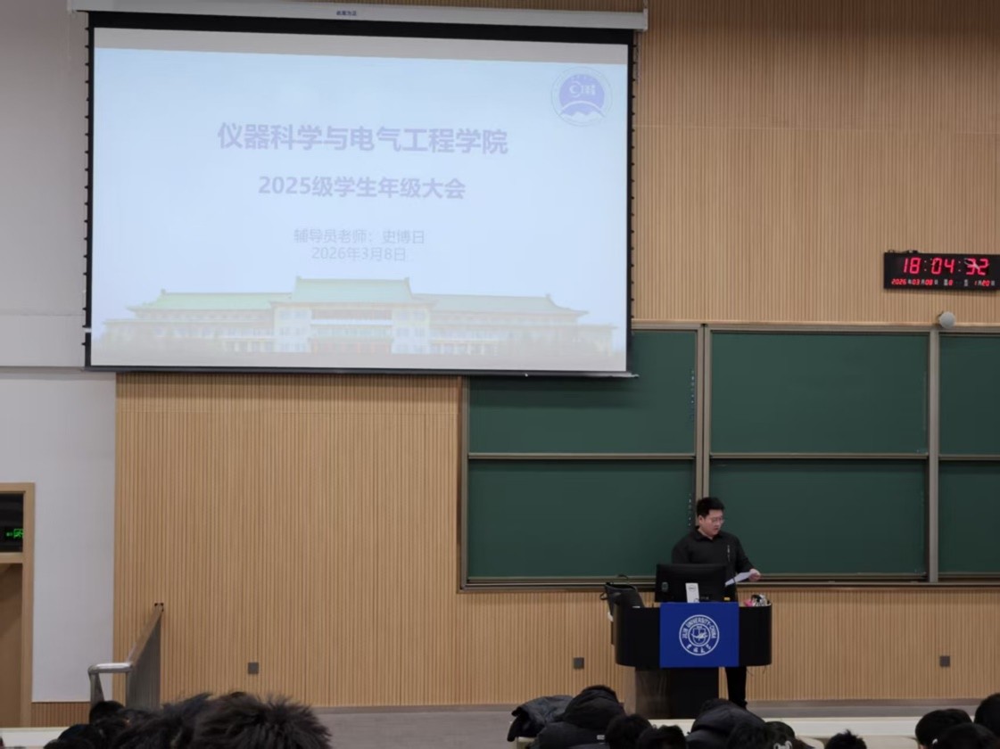 2025级本科生辅导员史博日老师于李四光楼第二阶梯教室召开新学期首次年级大会。