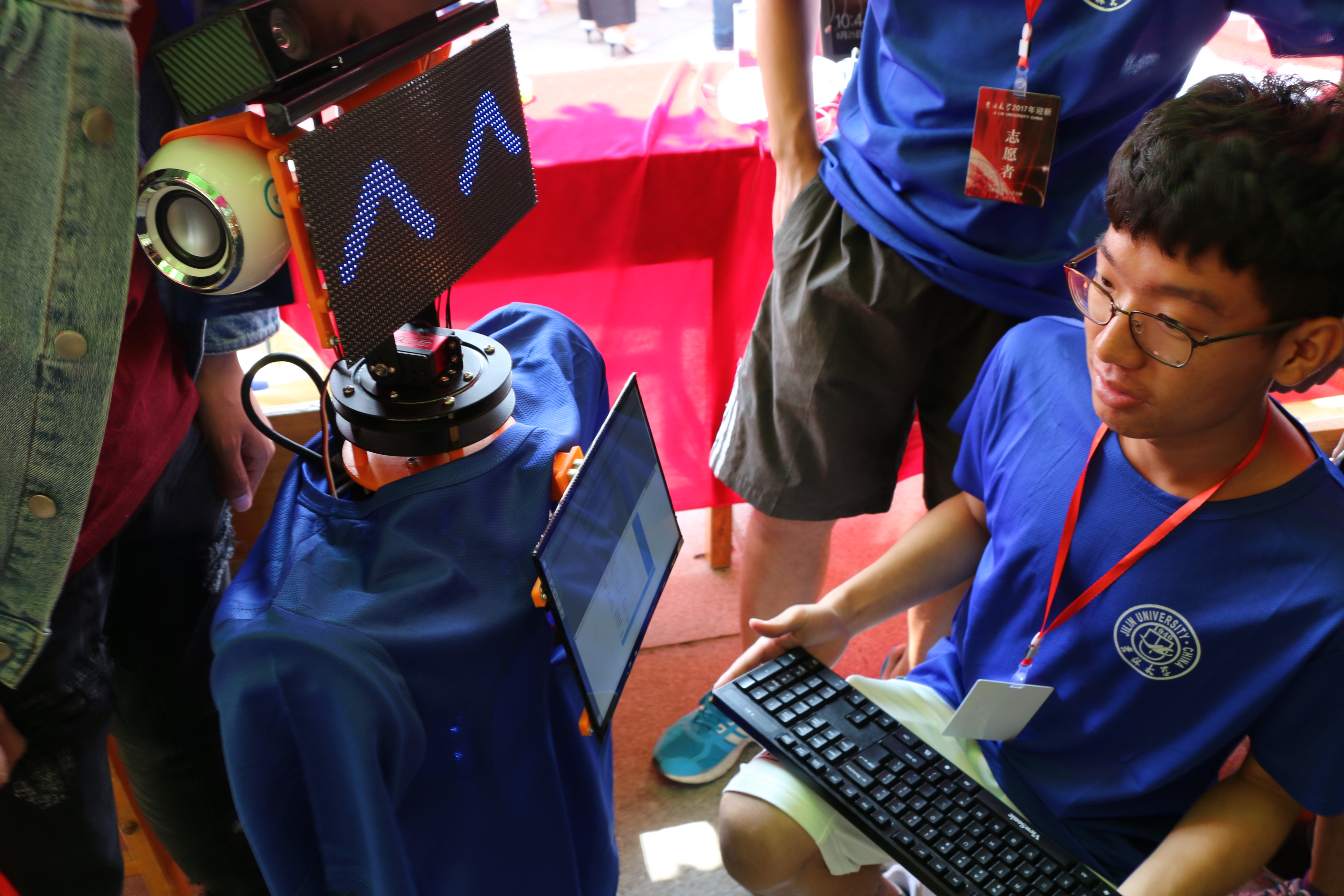 本科生设计开发的语音互动机器人,其在迎新现场的工作是和新生进行语音互动,并提供给新生寝室、学号、班级等基本信息。