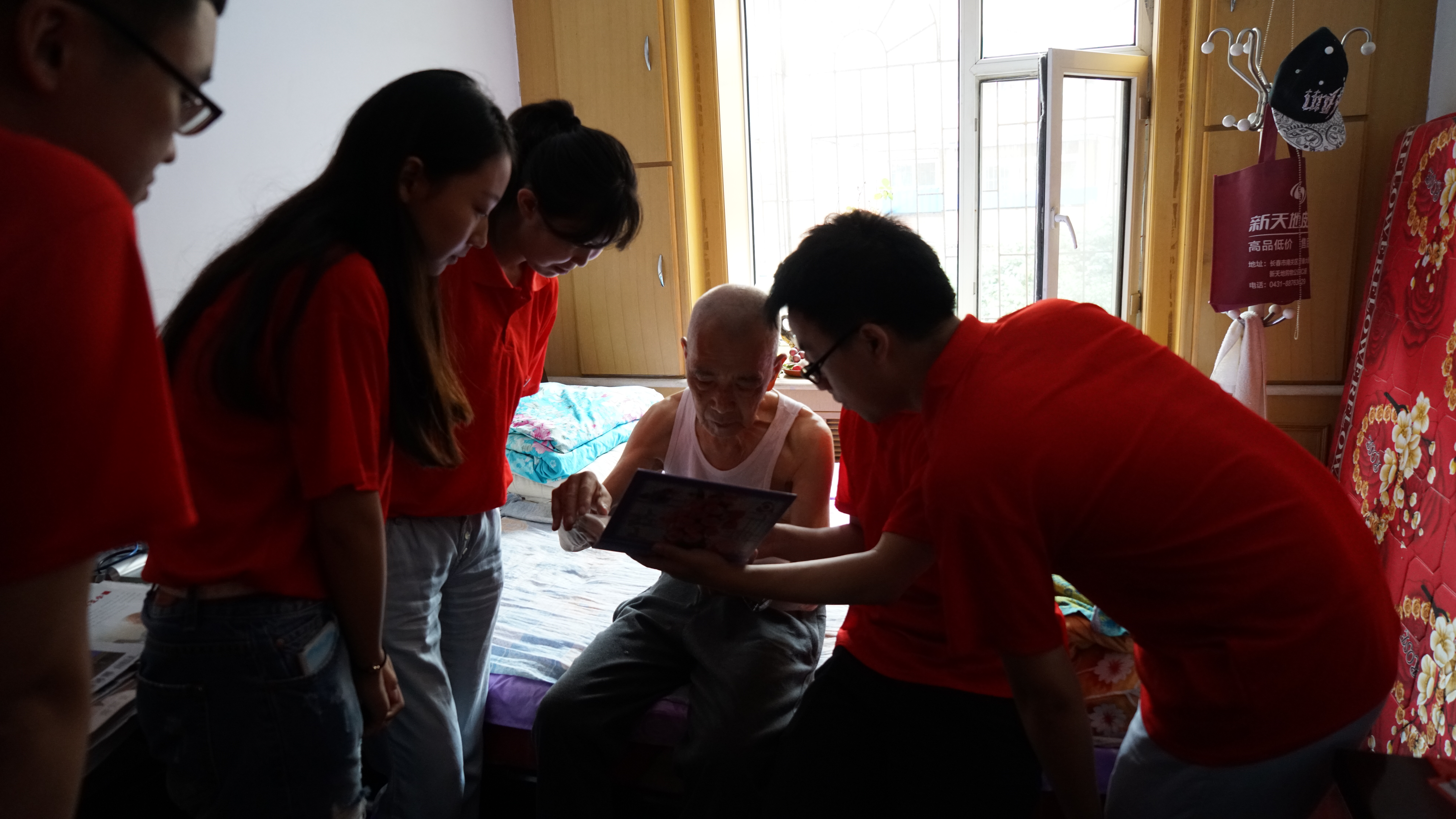 告别邱存道老人之后,队员们提着水果来到了李兆仙老人家里。老人的儿女在长春居住,偶尔会回来看一看她,她患有多年的糖尿病和骨刺,每天都要去诊所换药,老人十分慈祥,询问队员们的学习工作情况,鼓励队员们说:“学习的时候就要好好学习,工作的时候就好好工作,要珍惜时间,等老了以后就力不从心啦。”最后实践团与老人合影留念后依依惜别,老人拉着队员们的手说:“下次还要来呀。”队员们纷纷祝愿老人身体健康并表示以后会定期来看望老人。