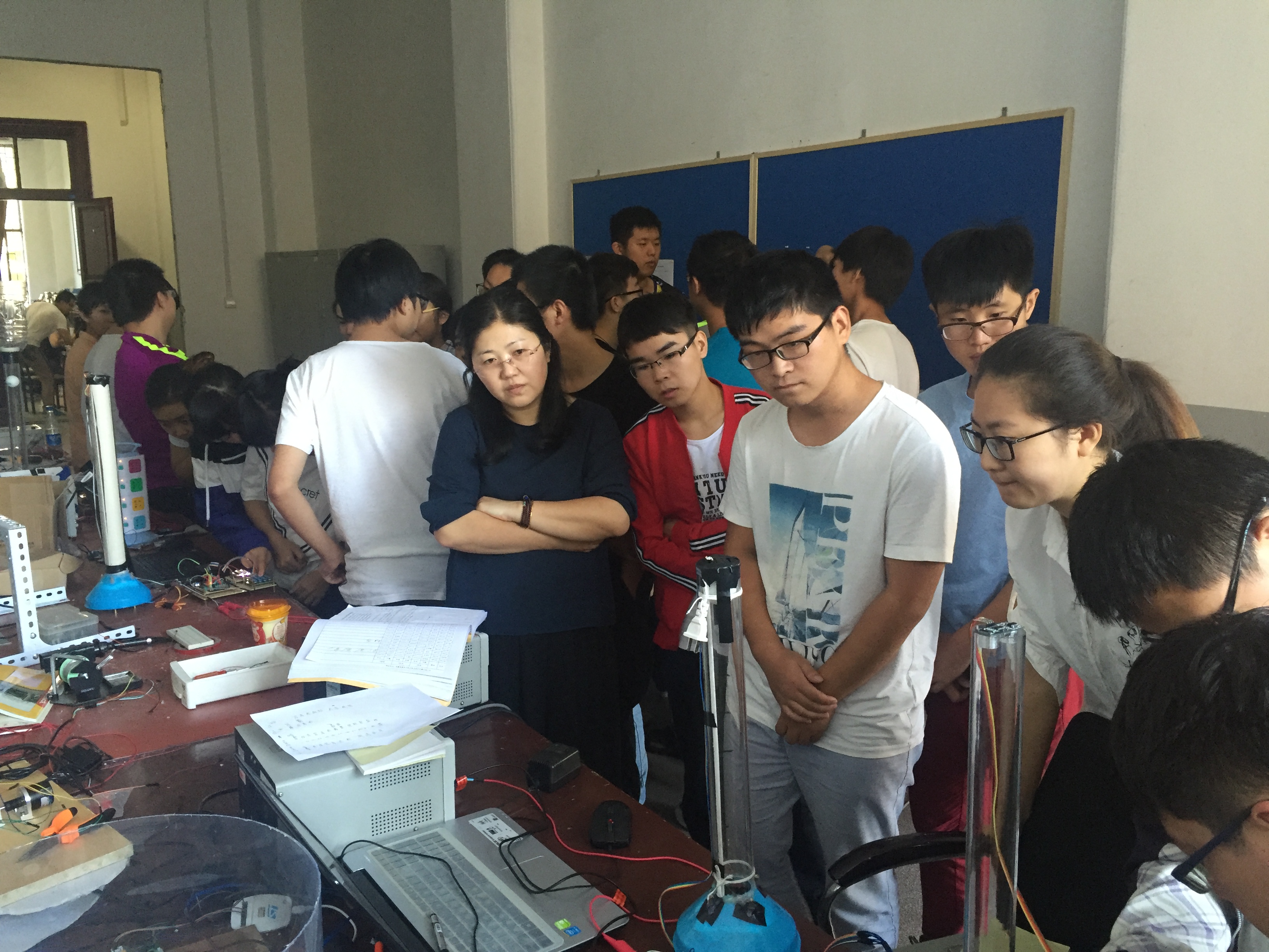 刻苦拼搏的精神,秉承实验室多年来精益求精的理想,始终奋斗在实验室。当中,大一新生杨洋的努力格外引人注目。作为卓越工程师班的学生,不仅追求学业成绩优秀,而且励志在实践方面也同样做到巾帼不让须眉。由于平时缺乏实践方面的培训,面对困难的她并没有气馁,反而增加了自己在实验室的时间,她用比别人多花的时间将实践方面的缺陷慢慢地补了回来。“人十能之,己百之”,正是凭借着这种精神,杨洋同学交出了一份令人满意的答卷。14级控制组为了能顺利的控制好乒乓球的悬浮,不仅自学3D打印机的使用,而且学会了利用刻板机刻制电路板,他们在目标的驱动下、老师和学长的帮助下不断地进步、不断地充实自己。此外,作为主力的13级学生也有条不紊地进行工作,不少学生为了能挤出更多的时间不惜在实验室打地铺睡觉。期间,为了检测大家在培训期间的成果,千承辉老师举行并主持了中期检查,所有学生的作品都受到了严格的审查和仔细的点评,检查过程中同学们相互交流,氛围良好。