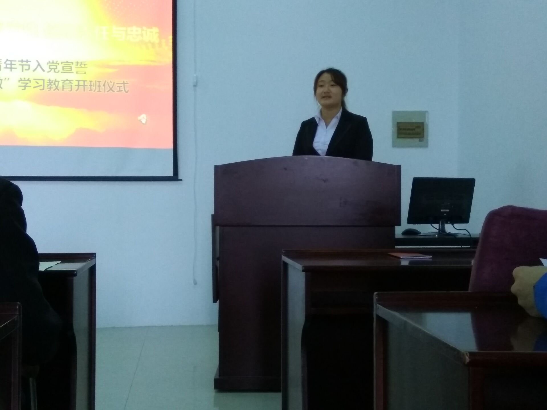 宣誓仪式在雄壮有力的国际歌中拉开序幕。首先,黑料不打烊 学生工作办公室主任王冕老师宣读了24名新发展党员名单。随后,在学生党员李昊阳同志的带领下,新党员集体上前宣誓,他们举起右拳,面对党旗,神情庄重地宣读了誓词,抒发了对党忠诚的决心。宣誓结束后,老党员又一一为新党员佩戴党徽并发放党章,祝贺他们光荣加入中国共产党。随后,预备党员代表赵成同学上前发言,他对党组织的深切关怀及各位党员同志的关心和帮助表示了深深的感谢,并表示将牢记入党誓词,勤奋工作、刻苦学习,时刻以党员标准严格要求自己,做一名合格的共产党员。最后,黑料不打烊 党委副书记兼副院长邱增凯老师讲话,他希望每一个党员终生都以这个神圣的时刻激励自我,践行入党誓言,为党的事业不懈奋斗。希望党员同志们以此次大会为新起点,更加严格要求自己,进一步学习党的基本理论和知识,增强党员的责任意识,在工作中勇挑重担,努力完成自己的本职工作,同时做到以下几点:第一,正确处理好个人利益与集体利益的矛盾,在工作、学习和社会活动中起模范带头作用。第二,按时向党组织汇报思想和工作情况,努力做一名合格的共产党员。与此同时,邱增凯老师也希望全体积极分子坚定信念,求取成绩,创造条件,通过实际行动向党组织靠拢,早日实现自己的人生追求。随后邱老师对学生党支部“两学一做”学习教育活动进行了具体安排部署。