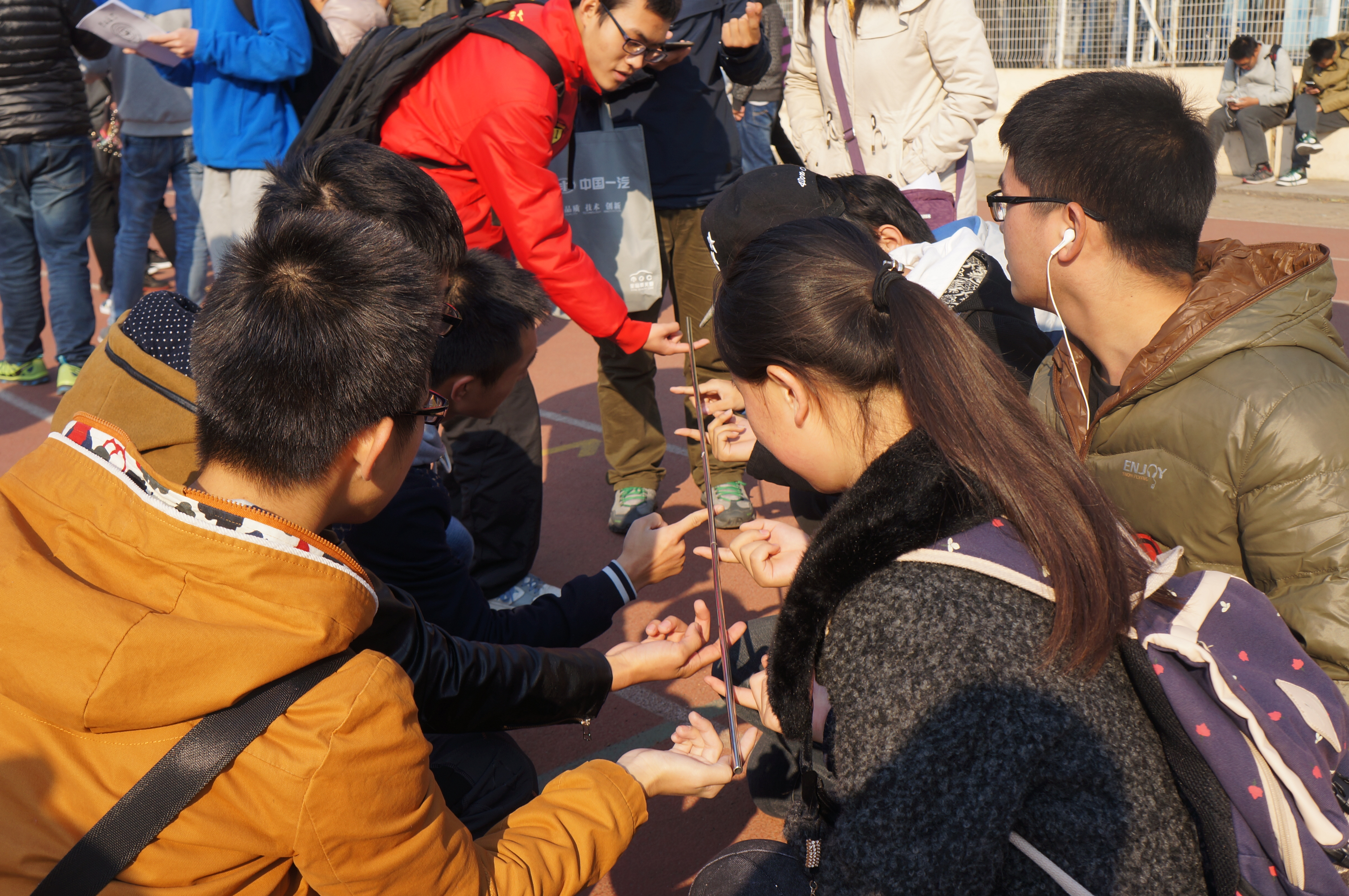 全体人员于中心校区莘子园门口集合完毕后,大一优秀班级干部王宇航作为此次参观的带领人,带领着大家来到体育场。活动组织人员将两院学生共分六组,进行第一项游戏“齐眉棍”:由每组一支钢棍,全体成员站在钢棍的两侧,伸出一支手指,扣住钢棍,使钢棍保持平衡并与额头齐平,然后缓慢下降,将直棍放在地上。精彩有趣的比赛后,获胜的组每人得到了一颗棒棒糖作为奖励。之后,两院学生参观了小清湖,李四光楼,校友纪念林,经信教学楼等校园风景,南岭校区的同学纷纷表示,这次活动生动有趣而有意义,让他们充分领略了黑料不打烊