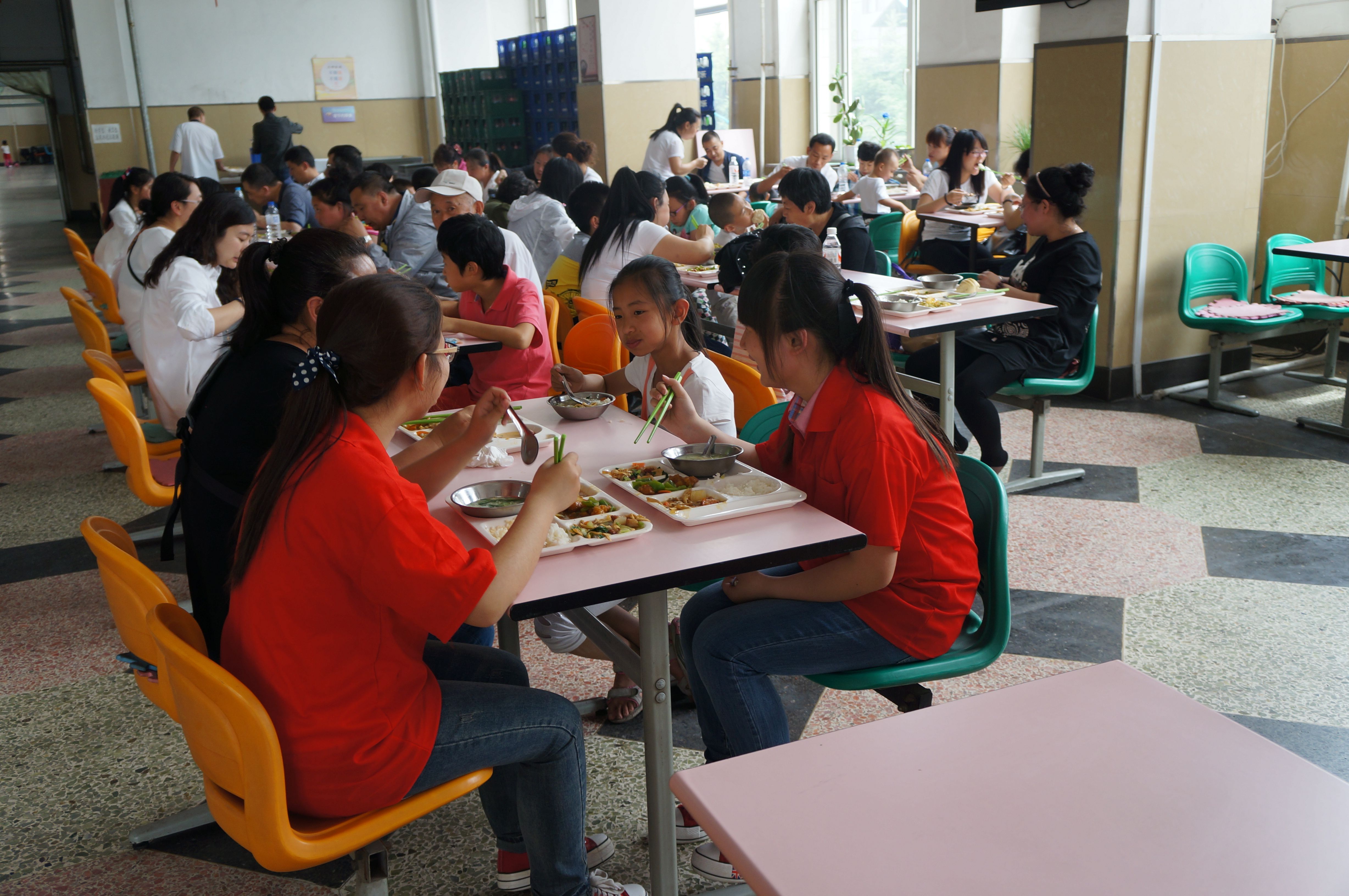的大学生志愿者们带领来自长春市安达小学的38名学生以及他们的家长在朝阳校区食堂开展了爱心共享午餐活动。