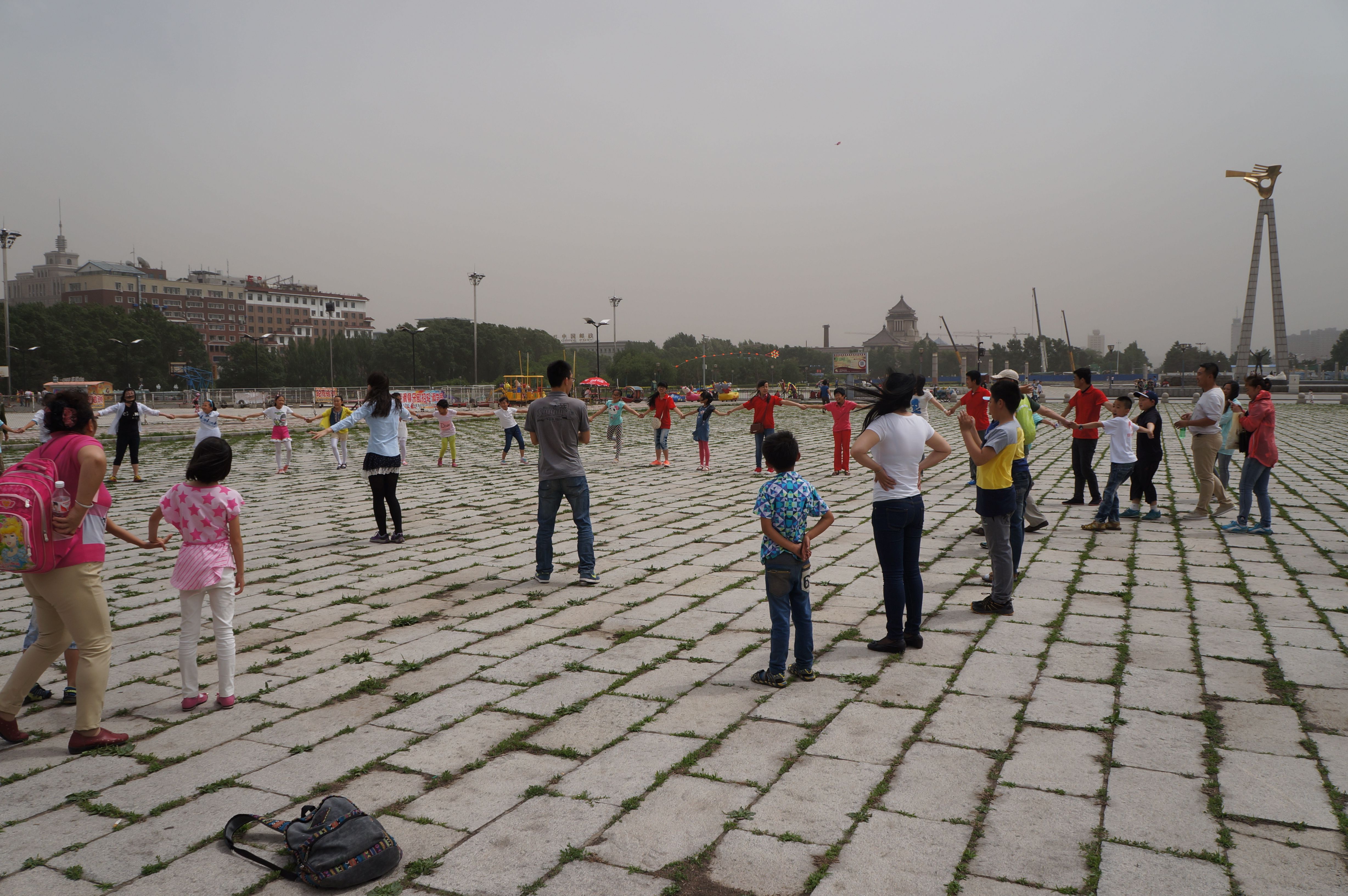 大学生志愿者们的带领下在文化广场地质宫门前开展了“双手托起希望,周末圆梦大学”素质拓展活动。