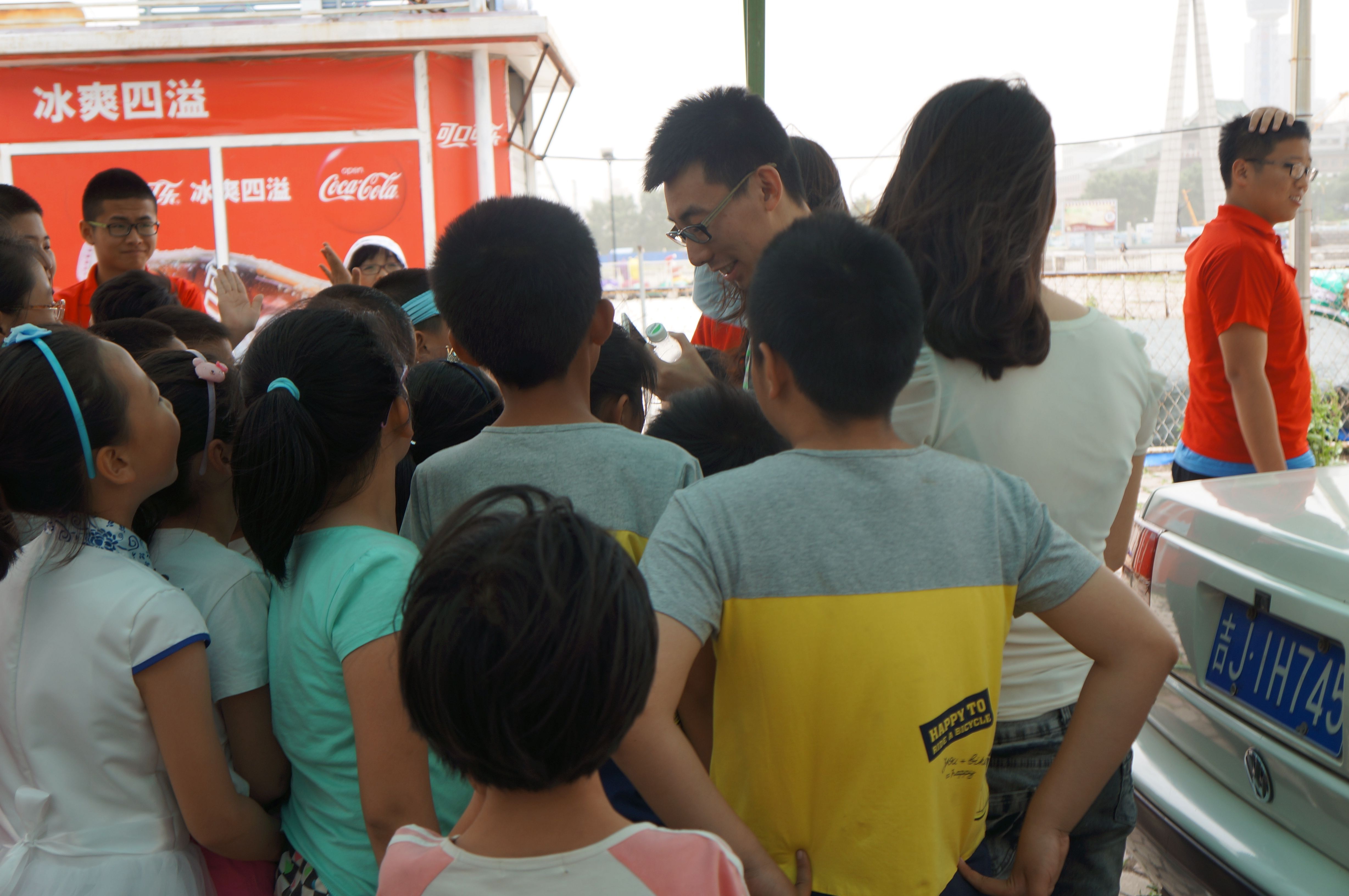 本次活动于下午1点在文化广场地质宫门前的素质拓展场地进行。志愿者们首先为同学们分好队伍。接着,同学们协力完成了“找朋友”拼图游戏,在欢快热烈的气氛中,孩子们忘记了起初的羞涩,完完全全投入到和同伴的互动中来,这不但增进了他们的友情,还培养了他们的团队协作能力。随后,大学生志愿者和孩子们配合完成了“你画我猜”游戏,在志愿者们的积极调动下,现场的气氛越来越热烈,志愿者和孩子们之间的配合越来越默契,感情也进一步深厚起来。游戏结束,志愿者为优胜队伍分发了奖品,鼓励所有的孩子力争上游,做时代的弄潮儿。