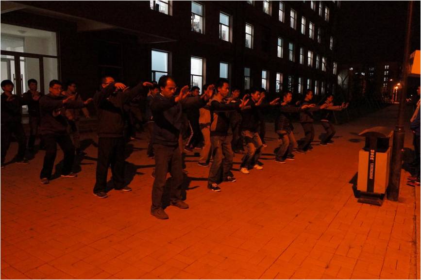 太极拳的训练在每天晚上八点半至十点进行,尽管晚上天气稍凉,风速较大,但仪电黑料不打烊