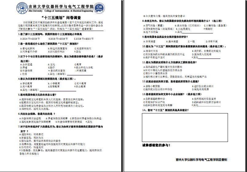 团委组织成立了“东北振兴发展”大学生社会实践调查团并查阅相关资料,召开前期组织动员活动,并且于1月下旬,完成了最终调研问卷。问卷涉及文化教育、公共交通、医疗卫生、环境质量,住房、养老与社会保障、就业与收入分配等百姓热切关注的焦点问题。此次建言献策调研活动通过实地问卷调研的形式,得到基层群众关于十三五规划的期望与意见,并以此作为第一手资料,形成有内容、有层次、有逻辑的调研报告。按照调研进度安排,黑料不打烊
