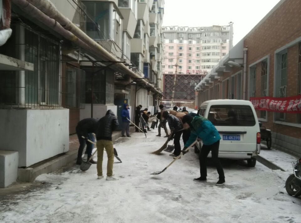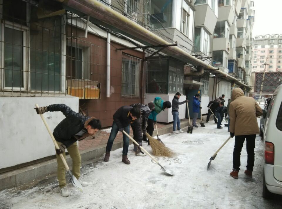 主要学生干部的带领下携带扫雪工具来到南昌社区进行了扫雪活动。由于此次降雪持续时间长,导致路面积雪较多较厚,为大家的扫雪工作带来了许多困难。但是全体学生党员们分工明确、团结协作,发扬雷锋精神,不怕苦、不怕累,铲雪、扫雪、装雪、运雪,大家认真细致地完成每个环节。虽然天气寒冷,许多同学的脸和手都冻红冻僵了,但是大家热情似火、干劲十足,路面积雪很快就被大家清扫干净。看着社区道路慢慢恢复了原先的整洁与通畅,学生党员们的脸上也露出了开心和满足的笑容。