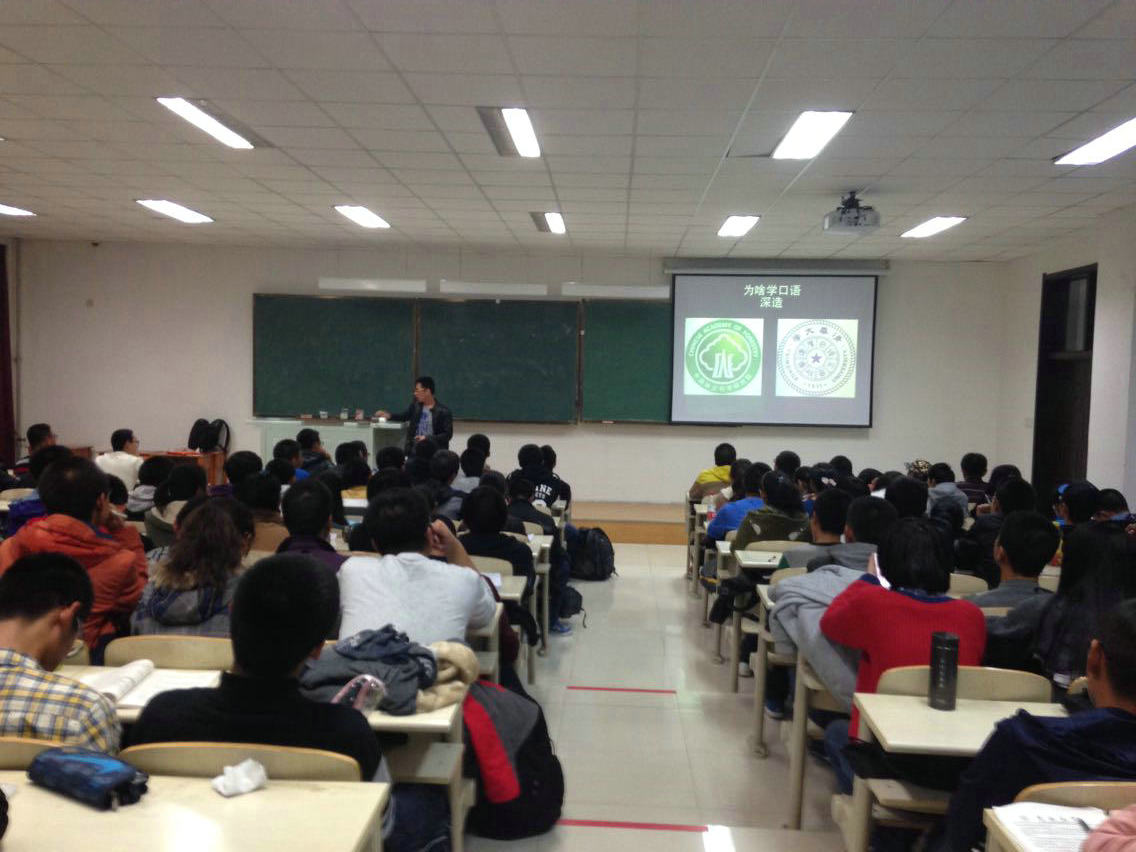 本次讲座专门邀请了北京新东方高级讲师吴宇寰老师主讲。在宣讲会开始时,吴宇寰老师提出“为啥要学习英语口语?”“英语口语要学啥?”“怎样学习英语口语?”三个问题,引起同学们极大的兴趣。继而,吴宇寰老师对这三个问题一一进行了解答,语言极为幽默诙谐,并在其中不时引用一些流行语,使得整个会场掌声不断。吴宇寰老师结合自身经历以及多年的教学经历,将学习口语的要诀向同学们讲授。同时,吴宇寰老师还向同学们介绍了他自己以及他身边一些有关于英语学习的小故事,给同学们带来了极大的鼓舞和启发。而且吴宇寰老师还在现场亲自带着同学们进行语音、语调等方面的学习,充分激发同学们的学习热情,也让同学领略到英语口语学习的重要性和必要性。此外,吴宇寰老师还从英语学习出发,谈论了一些与整个大学生活和整个人生旅程有关的经验和看法,给同学们带来了很大的收获。同学们对本次宣讲会表现出极高的热情,并积极参与现场互动,现场气氛活跃热烈。