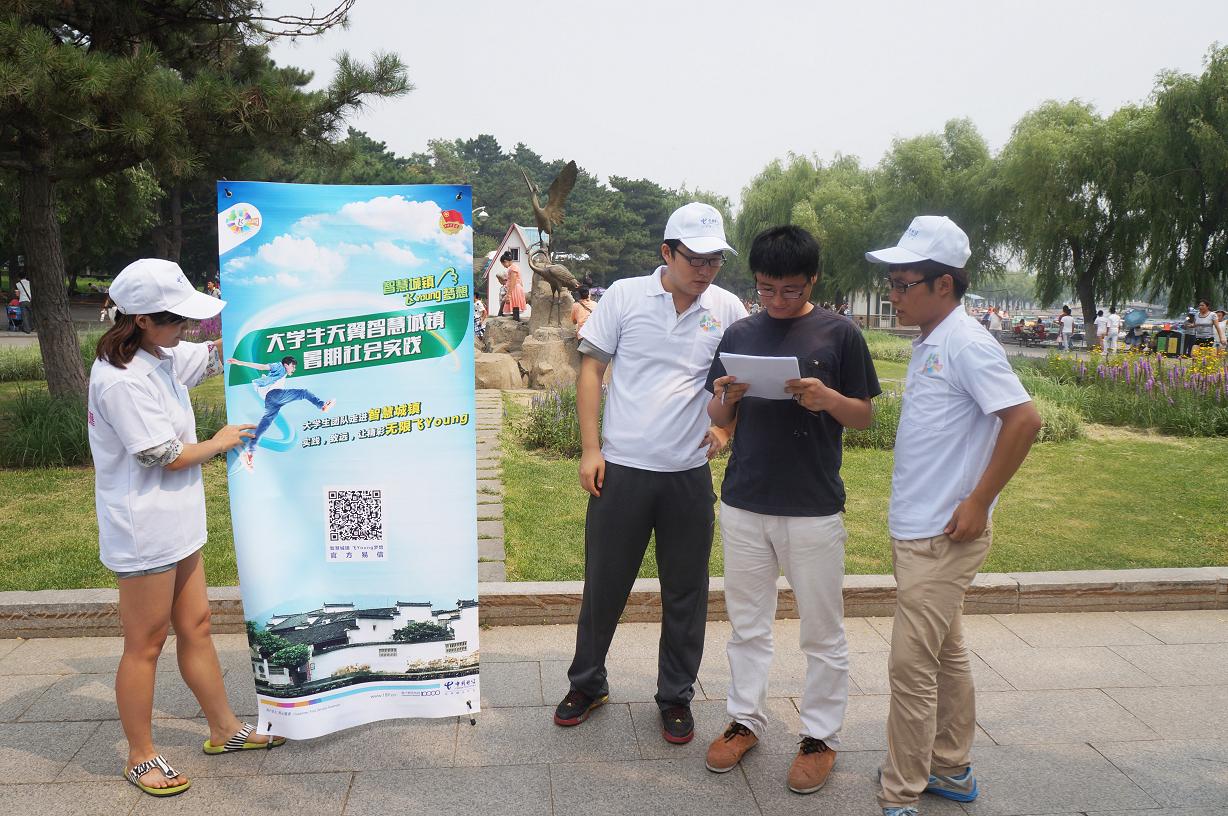 推荐为2014年暑期“三下乡”社会实践活动全国重点团队(“天翼”智慧城镇调研计划,全国共计100个团队)。8月8日,实践团主要成员走进长春市南湖公园开展了“智慧城镇,飞Young梦想”信息化专项调研活动。