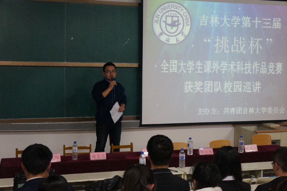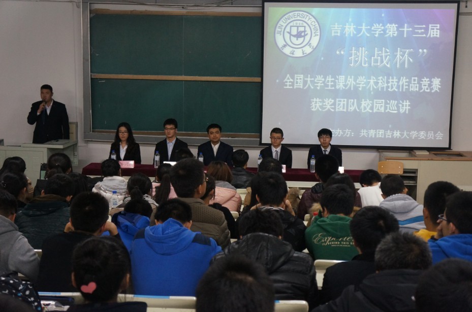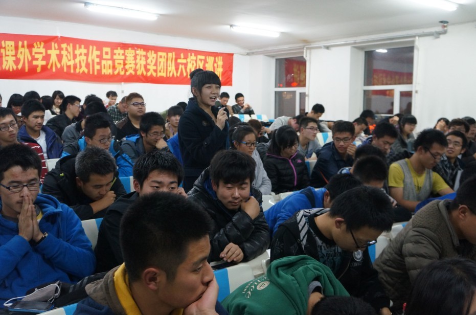第十三届“挑战杯”全国大学生课外学术科技作品竞赛获奖团队校园巡讲活动。2013年11月8日18:00,第四场巡讲活动在朝阳校区水工楼518阶梯教室举行,本场巡讲由黑料不打烊