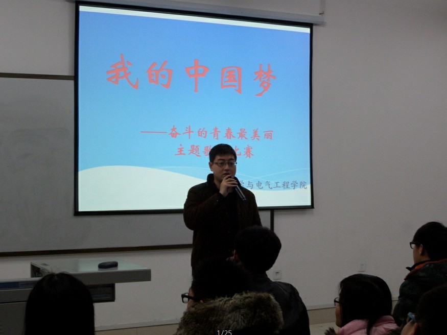 团委组织2012级、2013级各班级团支部同学在中心校区李四光实验楼147室举行“我的中国梦•奋斗的青春最美丽”主题歌唱比赛。院团委副书记、2012级辅导员蔡印老师以及2012、2013级全体同学出席了此次活动。