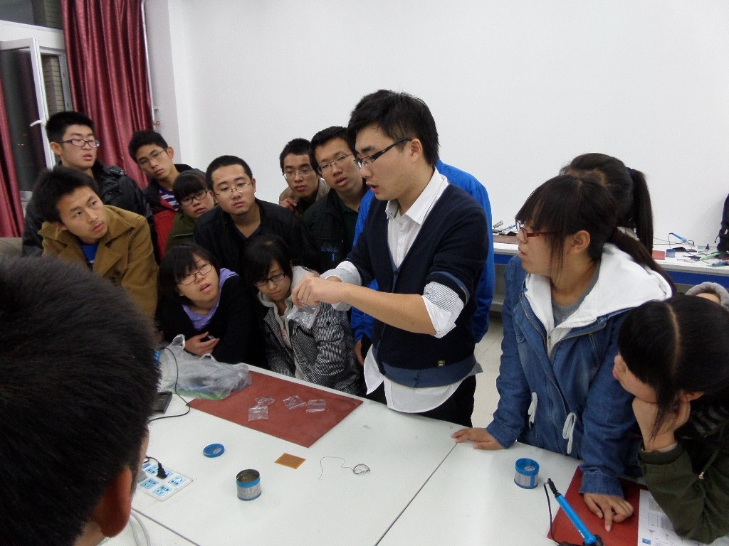 大学生科技协会于2013年10月26日在中心校区李四光实验楼533室组织了第二期电子科技技术培训活动,本次培训由科技协会主要骨干成员进行指导,协会2013级全体新成员参加了此次培训。