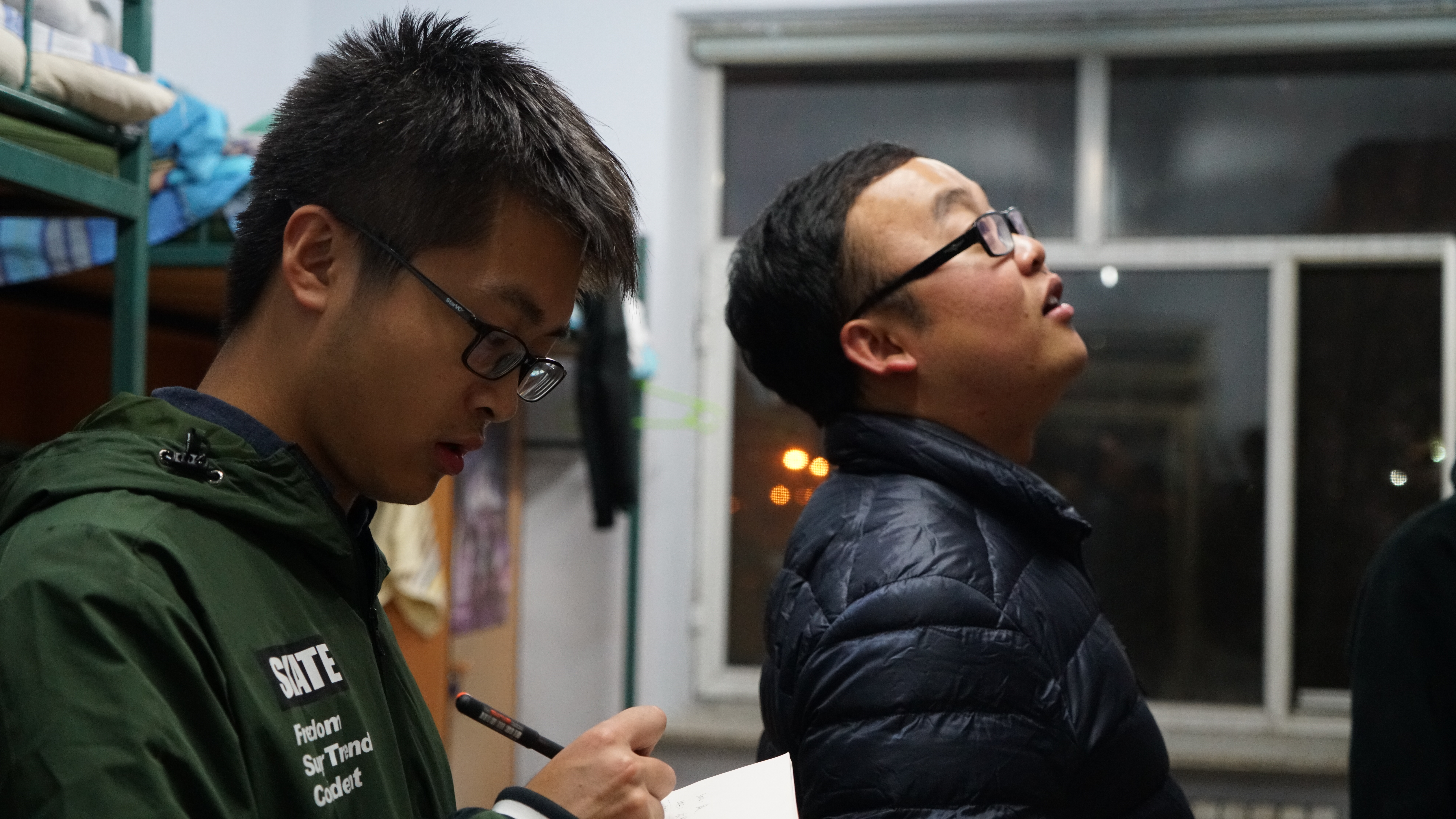 团委书记兼2017级辅导员张昊宇老师和生管部部长杨思恩于2017年10月19日晚进行了宿舍安全卫生检查工作。