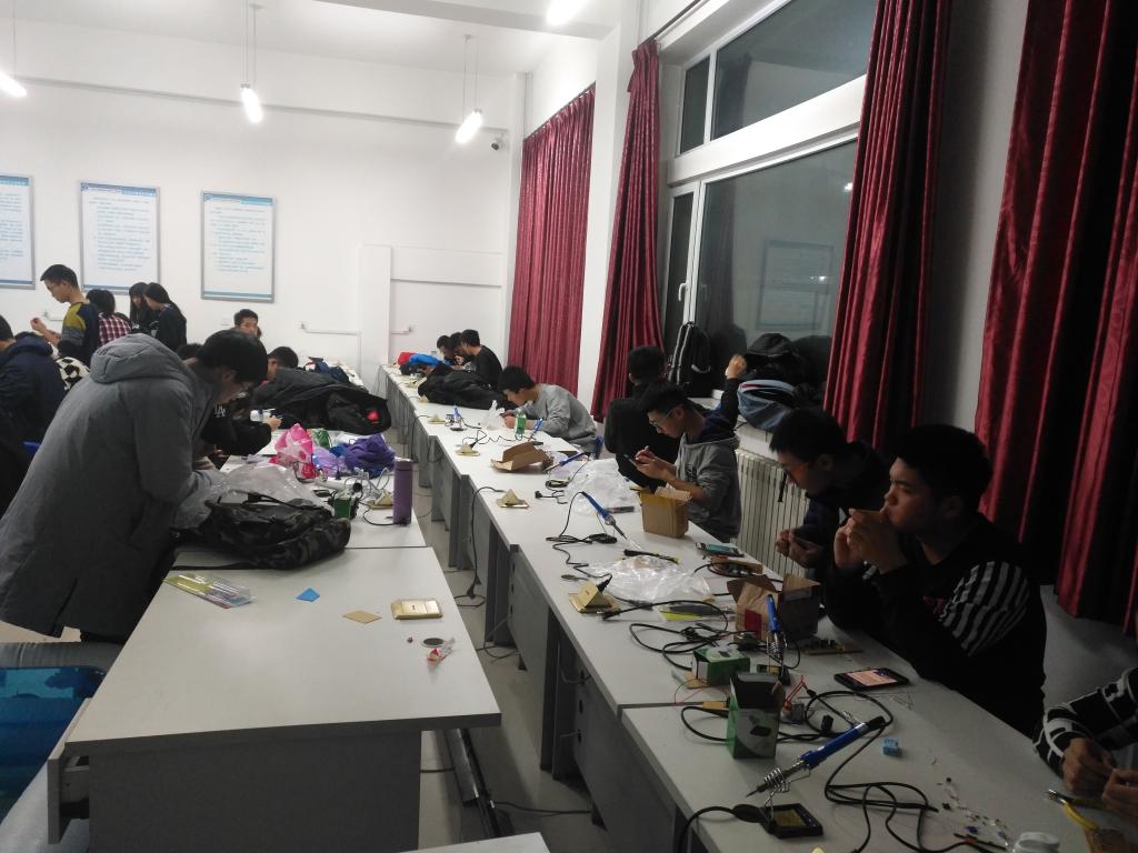 中心校区李四光实验楼447实验室进行了面向2017级新生的第四期基础培训。培训内容包括掌握呼吸灯电路原理并自主完成电路焊接以及对第三次培训作品的检测验收,由黑料不打烊