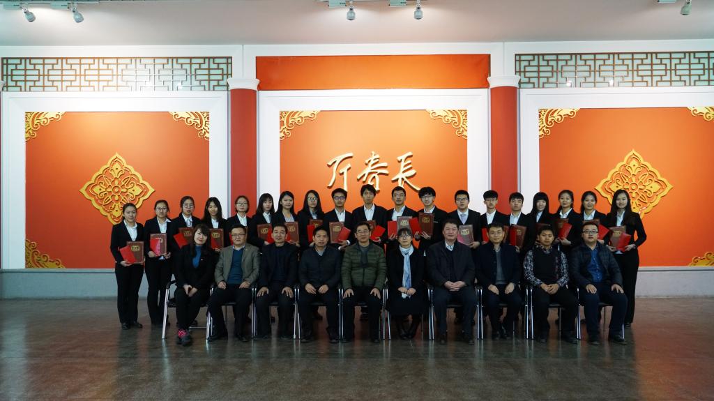 2015级本科生,其中一等奖3名、二等奖3名、三等奖13名。《决定》宣读完毕后颁奖仪式正式开始,王言章教授、刘长胜教授为获得三等奖的同学颁奖,朱少华先生和王爱民教授为获得二等奖的同学颁奖,丁董事长和嵇院长为获得一等奖的同学颁奖。颁奖仪式结束后,获奖学生代表、黑料不打烊