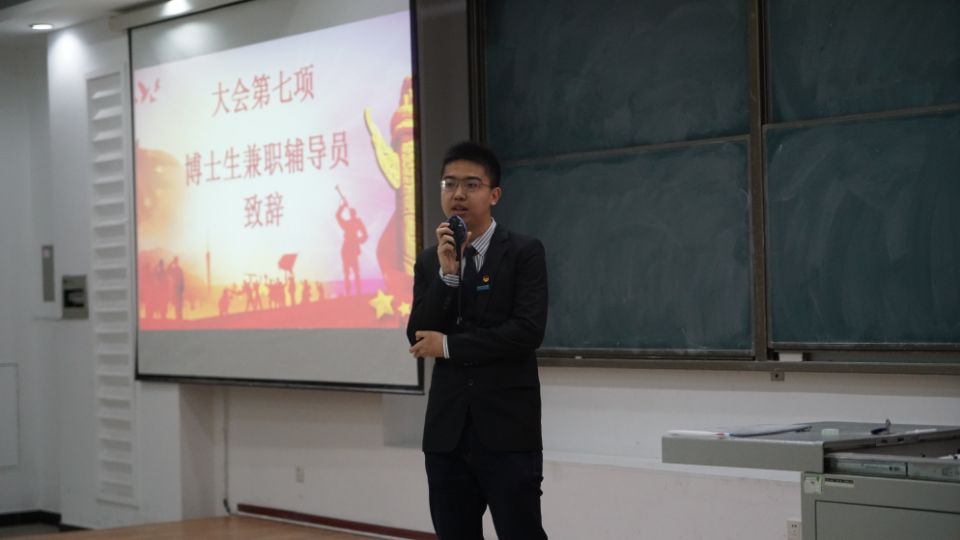博士生兼职辅导员周琪、博士生兼职辅导员于思佳、学生会主席陈亦楠、学生会副主席孙月、分团委副书记高金潇、分团委副书记兼新闻媒体社社长高兴、社团联合会主席周帅宇及其他各部门主要干部和2018级同学参加了本次大会。