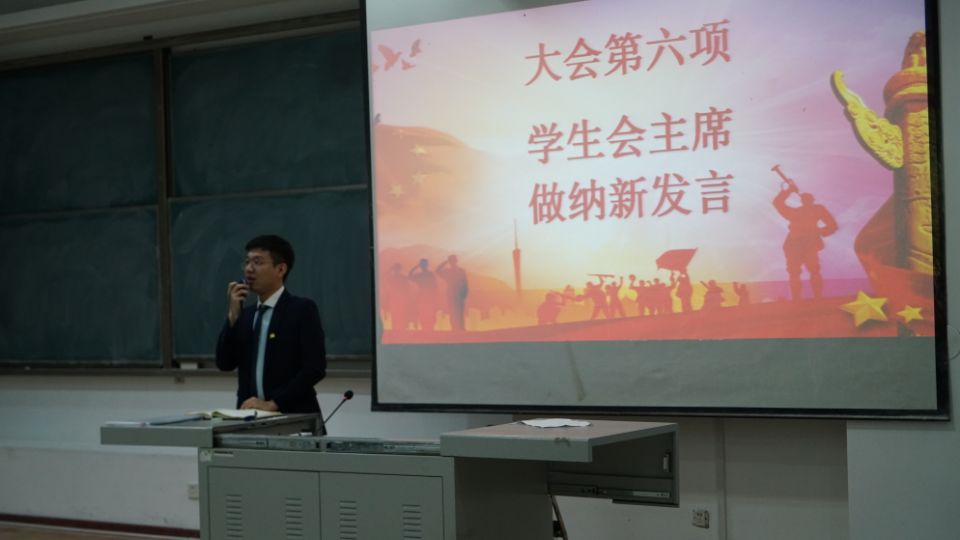 在全体齐唱团歌之后,学生会主席陈亦楠同学对过去一年团学联组织的工作进行总结汇报。之后大会对2018-2019学年寒假社会实践优秀志愿者进行表彰,接下来各部门依次展示部门情况,以幽默风趣的语言带动气氛,鼓励大家积极报名,现场气氛活跃。随后学生会主席陈亦楠同学发言,在发言中他表达了对2018级新生寄予的厚望。最后博士生兼职辅导员周琪发言致辞,对本次大会提出了表扬以及肯定,鼓励大家再接再厉,共创佳绩。之后全体成员奏唱校歌。纳新大会秉承“公开、公平、公正”和“择优录用”的原则,对每位报名的同学都进行了细致的考核,同学们回答积极,思维活跃,纳新活动认真、高效地进行,选拔过程井然有序。2018级同学积极参与,纳新现场十分火爆,参加面试的同学准备充分,对答如流,大方得体,纳新大会取得成功。