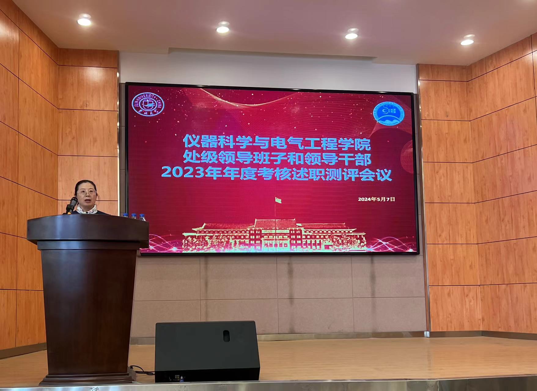 2023年在党的建设、人才培养、学科发展、科学研究、交流合作等方面工作的完成情况。随后,院领导邱增凯、嵇艳鞠、周伟、刘长胜、林婷婷、随阳轶、南旭良、田国胜、边江依次按照分管领域,向与会人员作工作述职。述职后,与会教工对处级领导班子和领导干部进行了测评投票。
