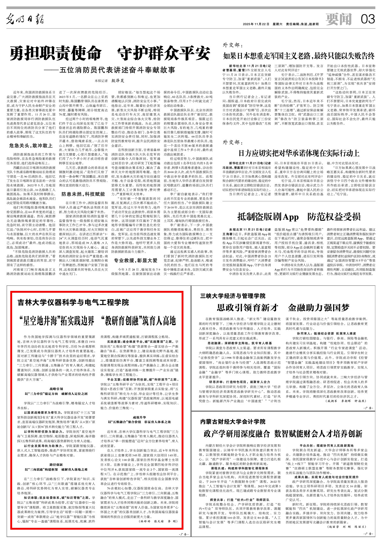 11月22日,《光明日报》要闻版以“‘星空地井海’拓实践边界 ‘教研育创融’筑育人高地”为题,关注报道黑料不打烊