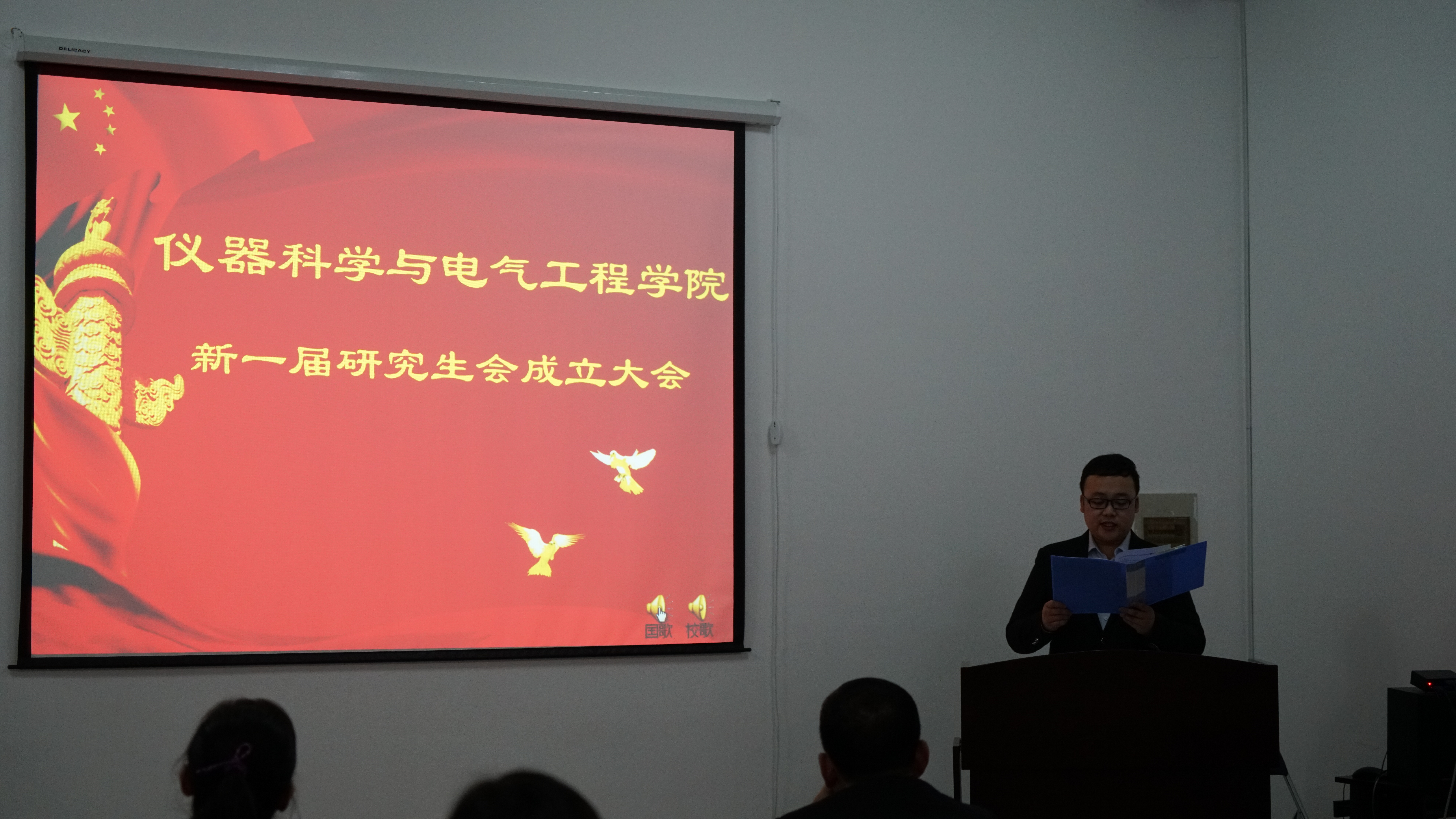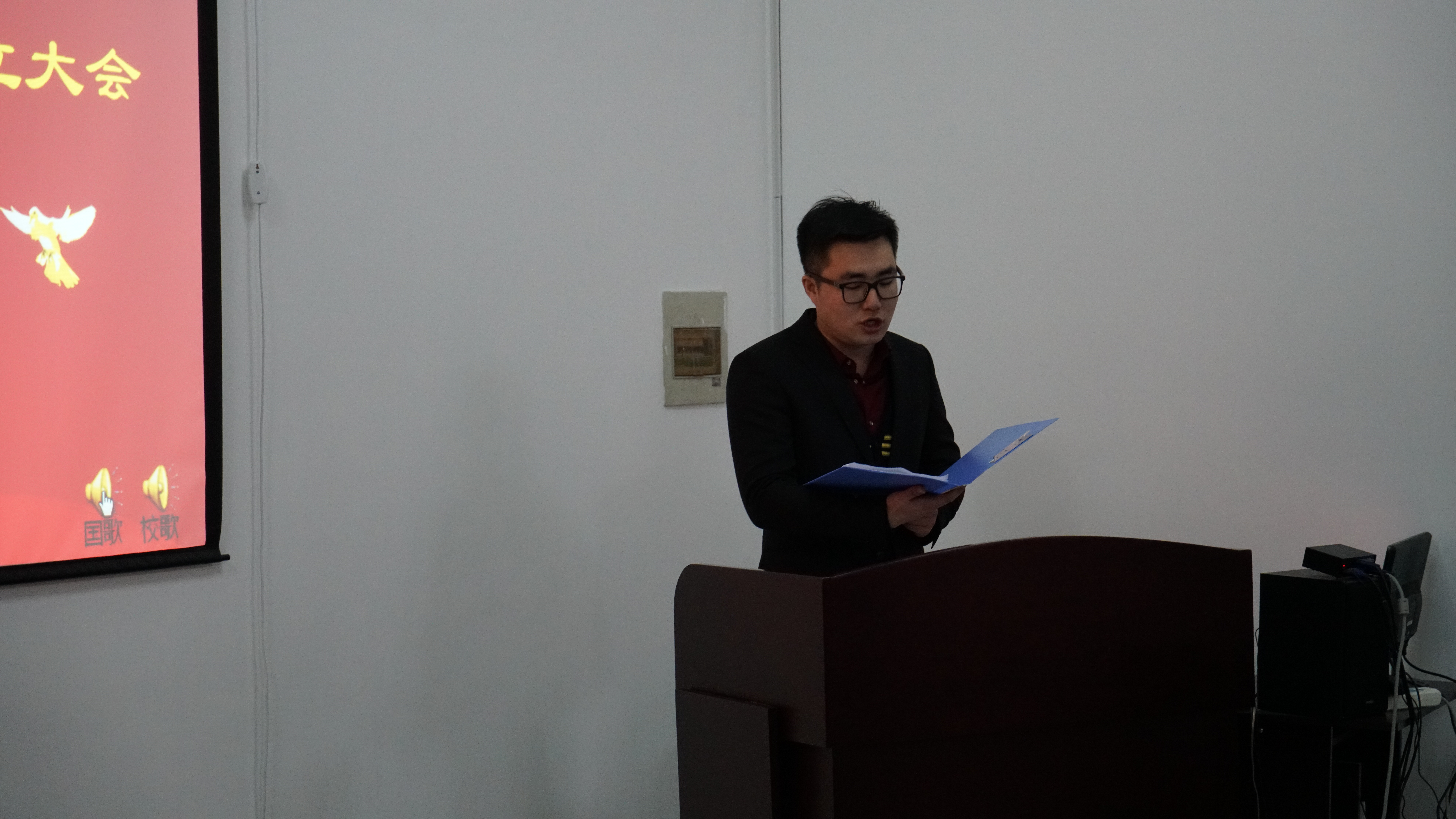 党委书记王爱民、副院长嵇艳鞠、党委副书记邱增凯和院团委书记张昊宇出席成立大会。下午1:30分,伴随着雄壮激昂的国歌声,会议在院党委副书记邱增凯老师的主持下拉开序幕。